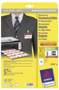 Avery L4726-20 badge & badgehouder Papier 240 stuk(s)