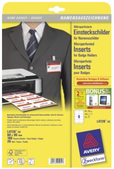 Avery L4728-20 badge & badgehouder Papier 160 stuk(s)
