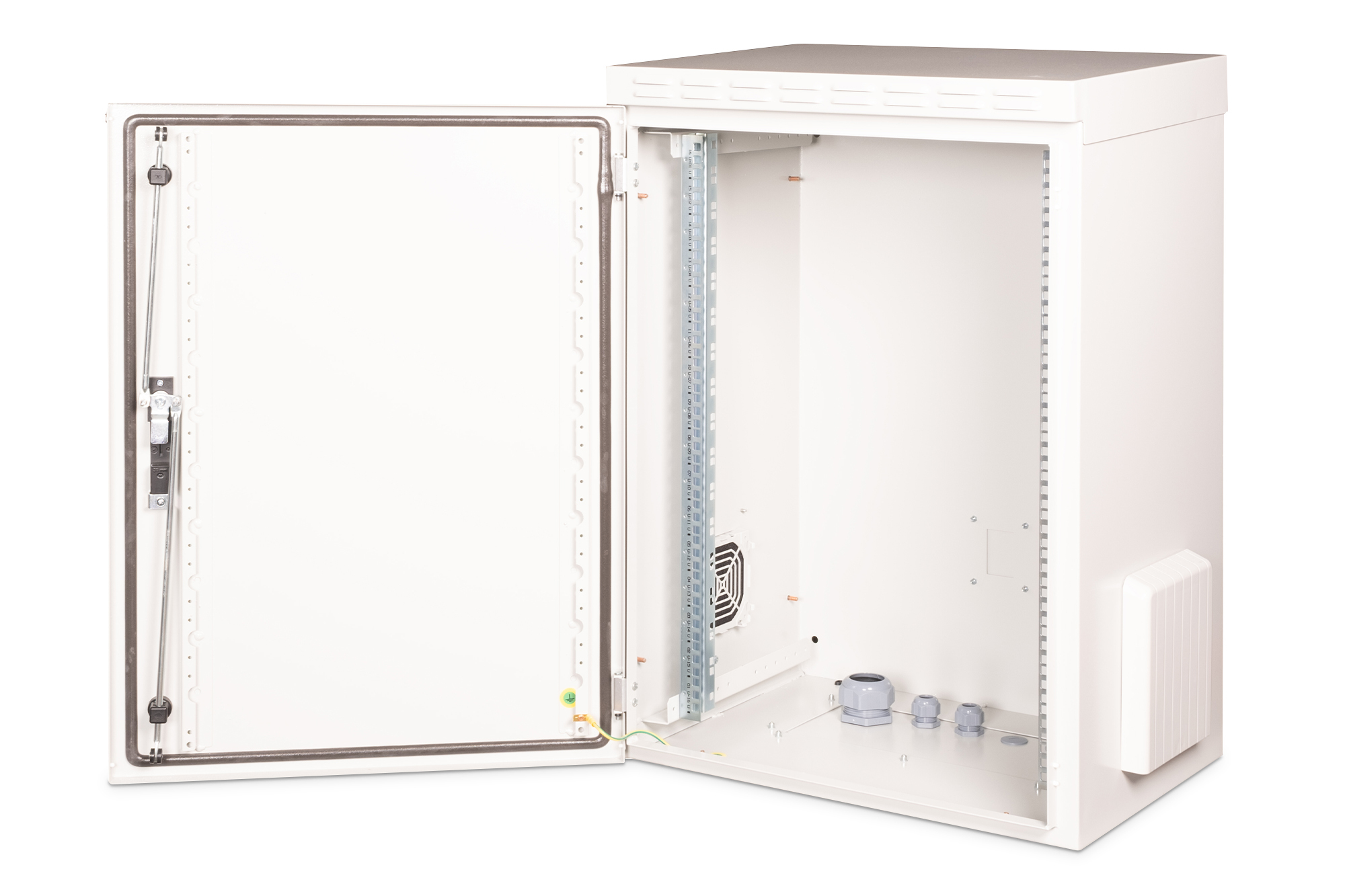 Digitus DN-19 16U-I-OD. Soort: Wandrek, Maximale gewichtscapaciteit: 100 kg, Internationale veiligheidscode (IP): IP55, Kleur van het product: Grijs