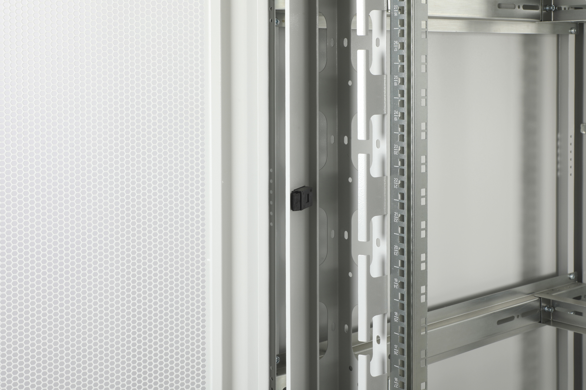 Digitus DN-31116. Soort: Vrijstaande rek, Rackcapaciteit: 42U, Maximale gewichtscapaciteit: 800 kg, Sleutelsleuf, Verstelbare voeten, Verbeterd kabelbeheer, Rekrails, Internationale veiligheidscode (IP): IP20, Kleur van het product: Grijs