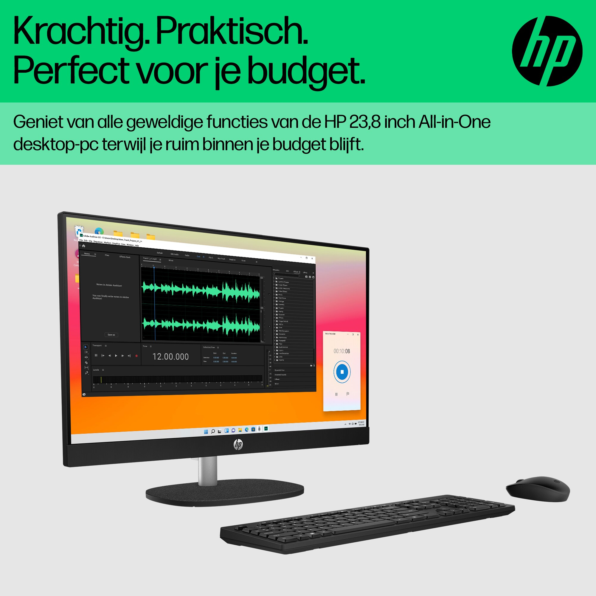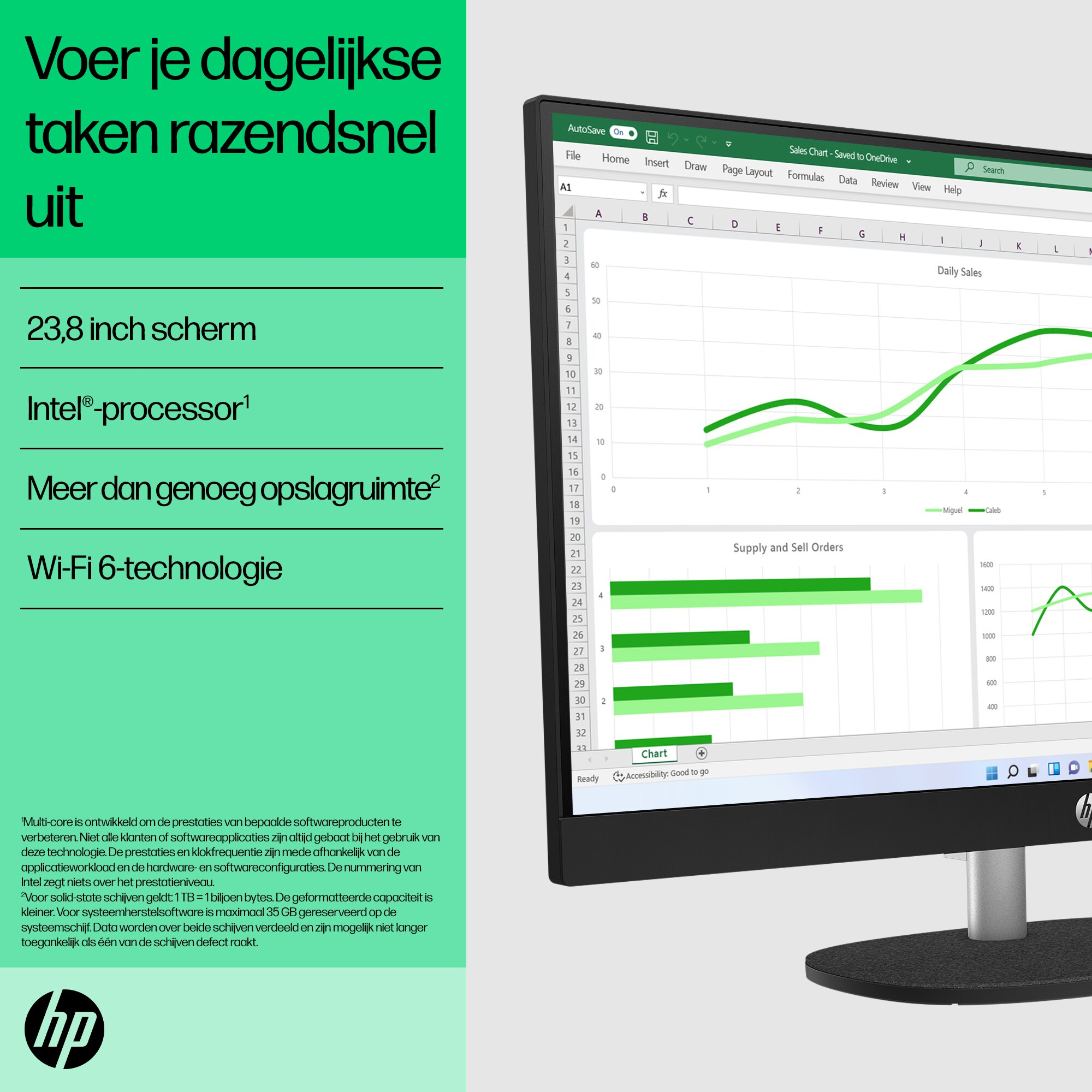 Met deze dunne HP 23,8 inch All-in-One Desktop kun je meer doen terwijl je minder gebruikt. Verantwoord geproduceerd met gerecycled plastic uit consumentenproducten en plastic dat in zee dreigde te belanden[1] en EPEAT Gold-geregistreerd en ENERGY STAR-gecertificeerd[2]. Met een krachtige processor, geüpgraded geheugen en uitgebreide functies voor multitasking lever je nooit in op prestaties.