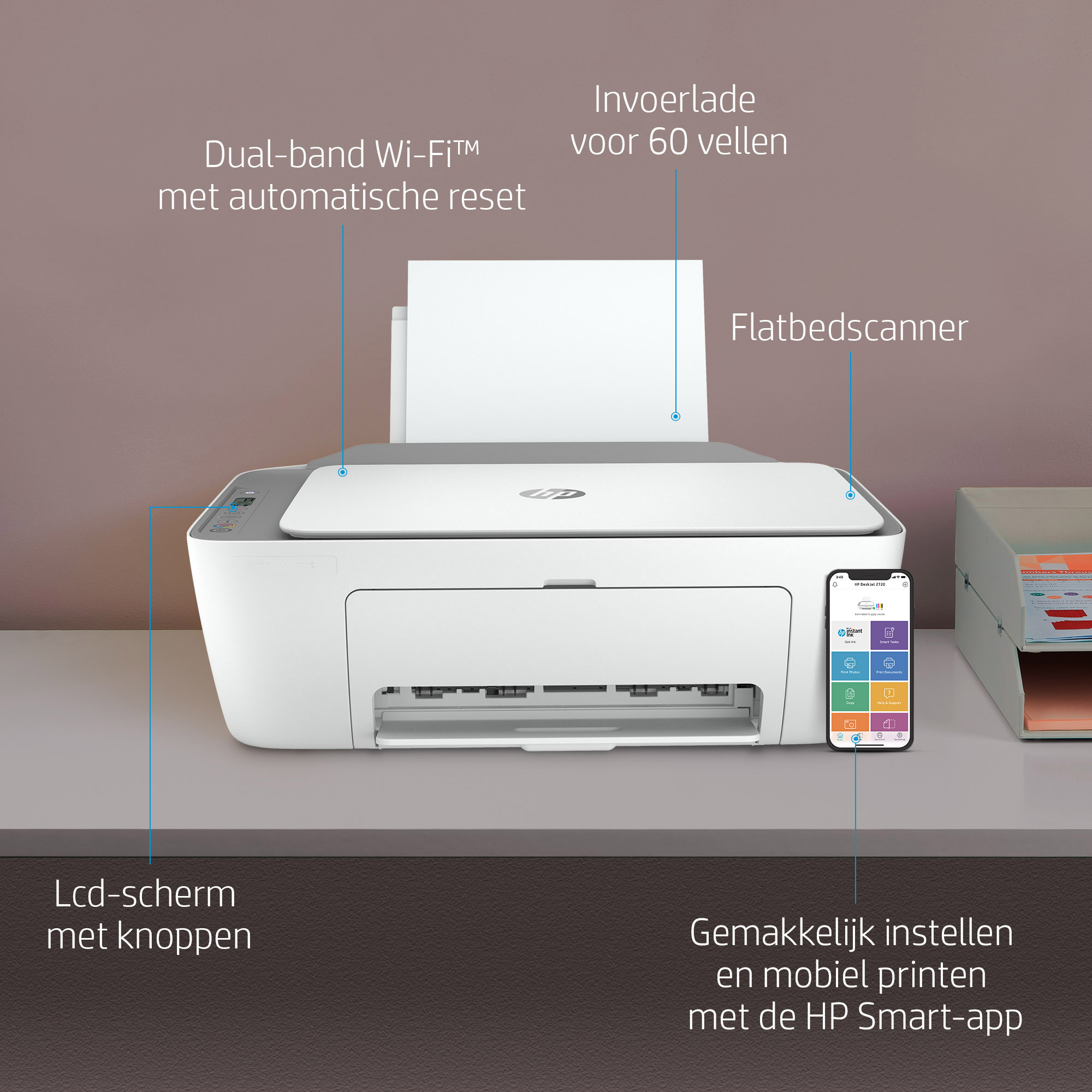 Print met gemak alledaagse documenten vanaf je smartphone, via de HP Smart-app.<sup>[2]</sup>