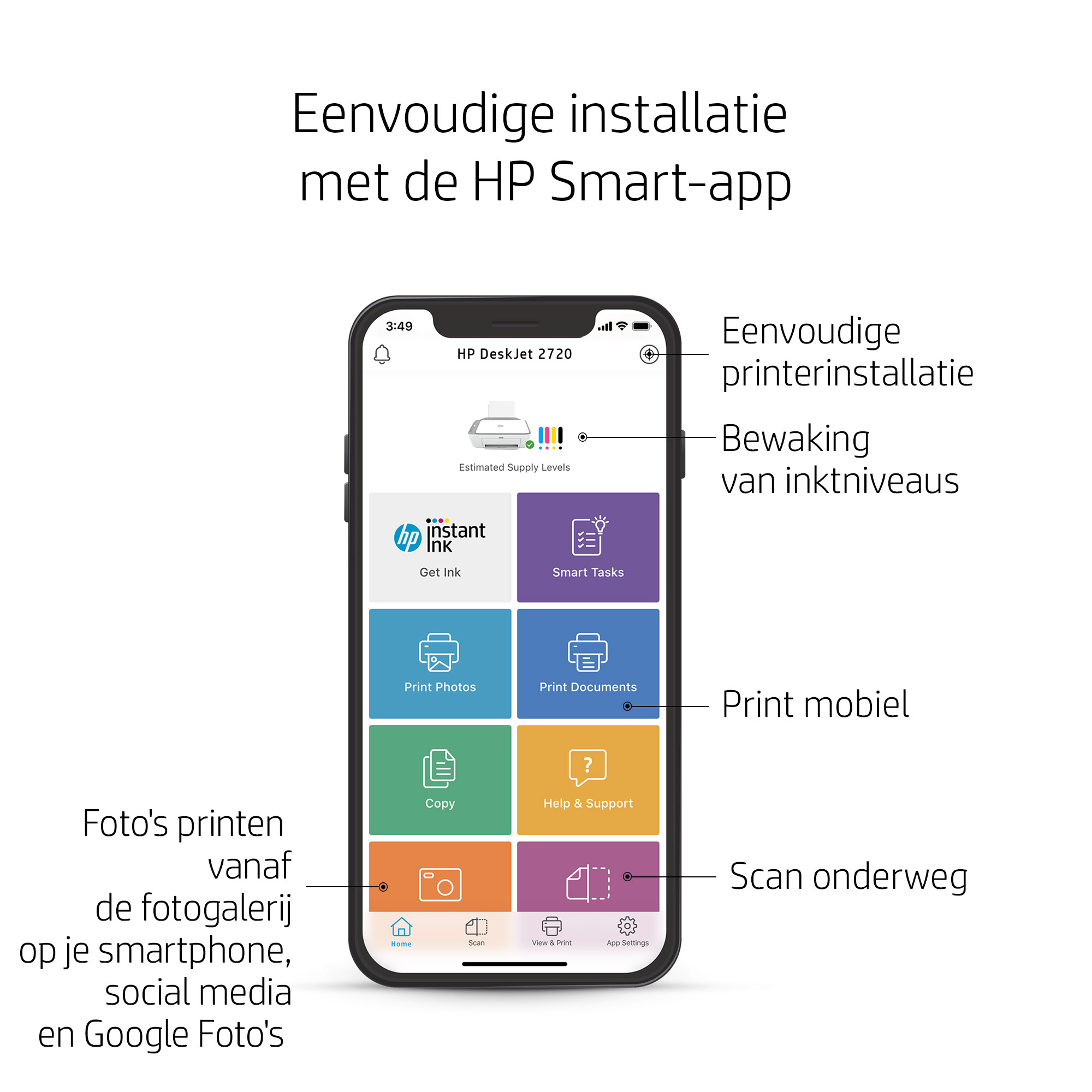 Ga snel aan de slag met een eenvoudige stap-voor-stap installatie, via de HP Smart-app.[2]
