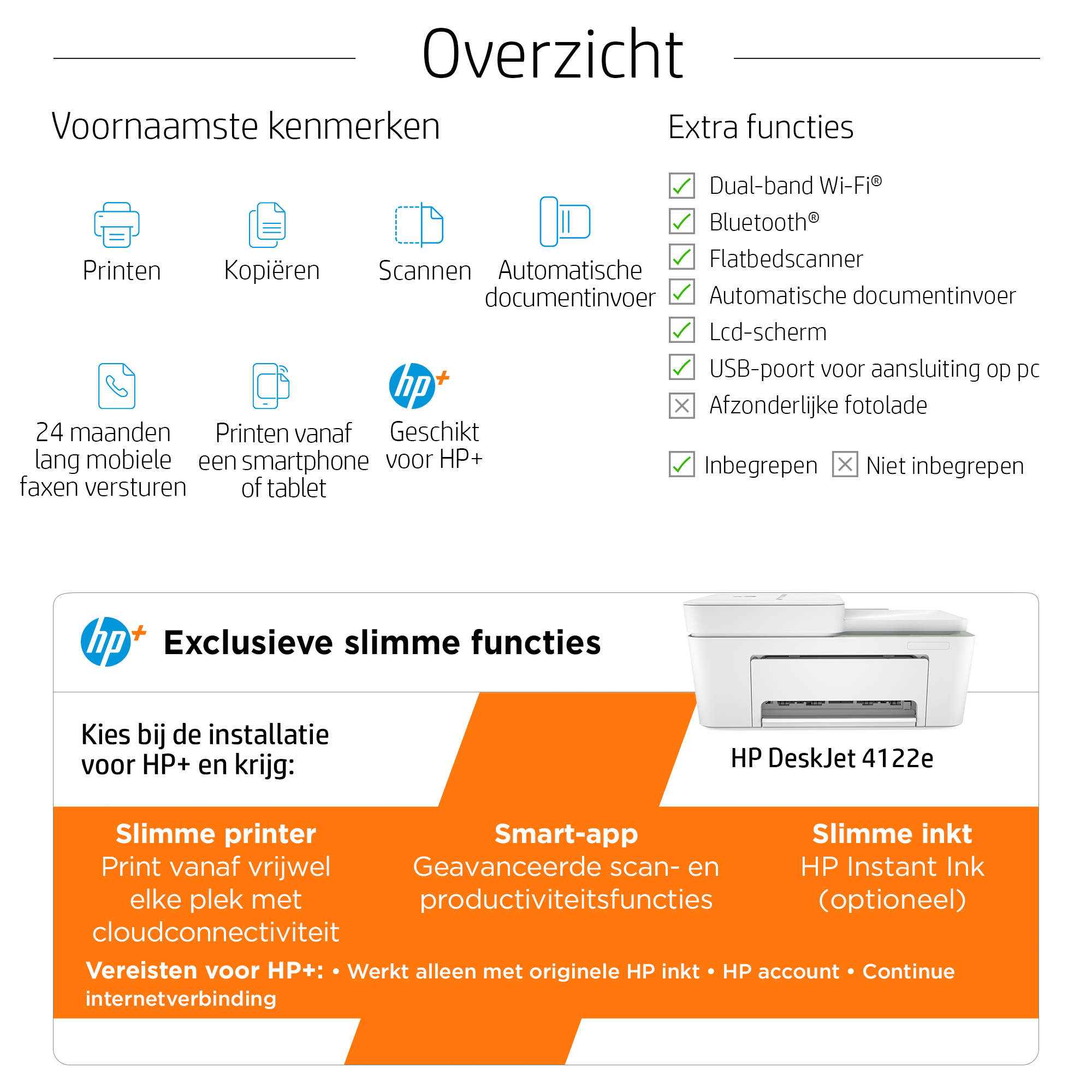 Dit is een printer die HP+ ondersteunt. Kies voor HP+ bij de installatie van het product om de voordelen te activeren. Voor HP+ is een HP account, continue verbinding met het internet en exclusief gebruik van originele HP inktcartridges tijdens de gehele levensduur van de printer vereist. Meer informatie op: http://www.hp.com/plus