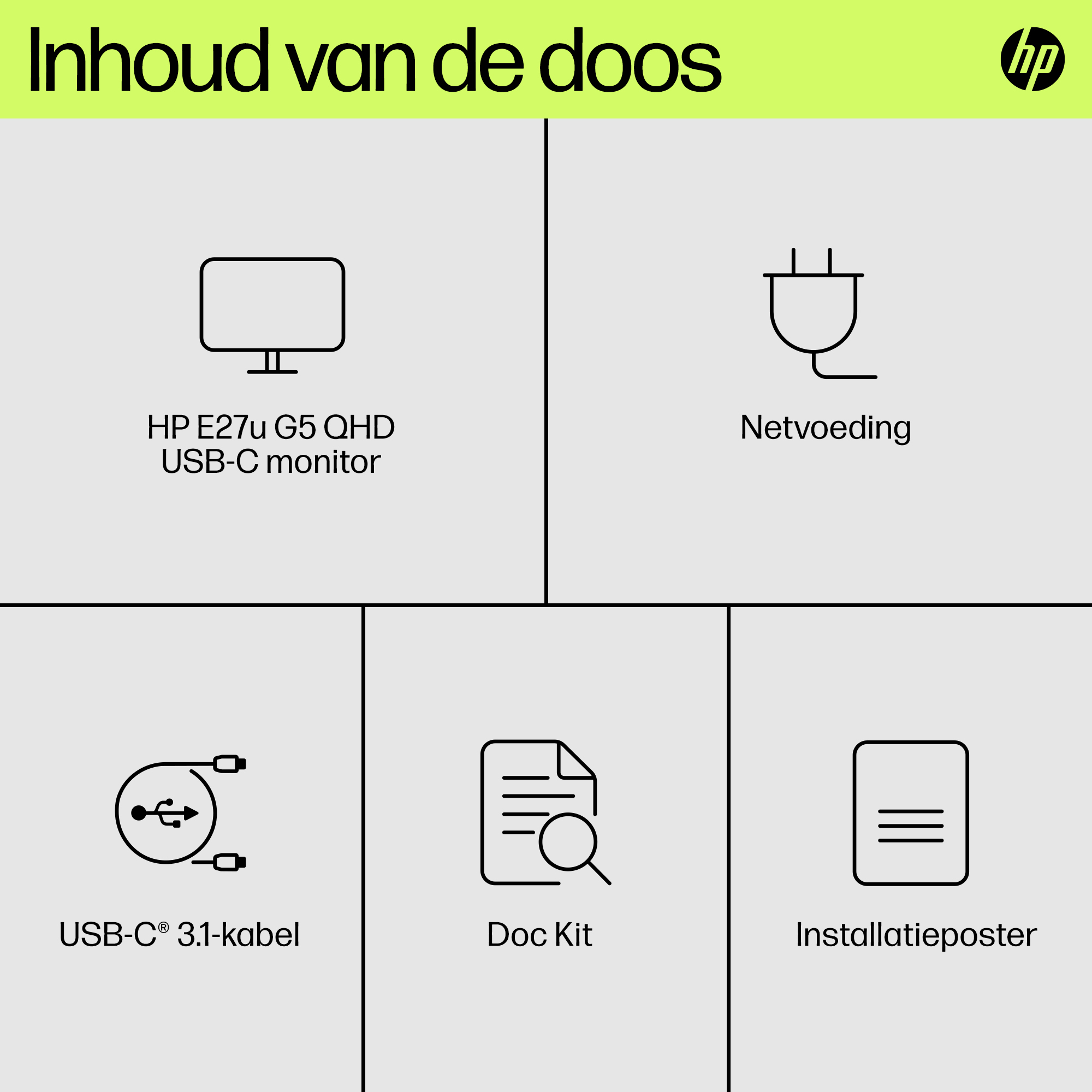 De HP E27u G5 QHD USB-C-monitor is met opzet vervaardigd voor haarfijne beelden, persoonlijk comfort en geeft een nieuwe invulling aan de begrippen flexibiliteit en kracht. Er staat je dus niets meer in de weg om optimaal te presteren. Dit beeldscherm is stijlvol ontworpen met oog voor het milieu en is perfect voor thuis en op kantoor.
