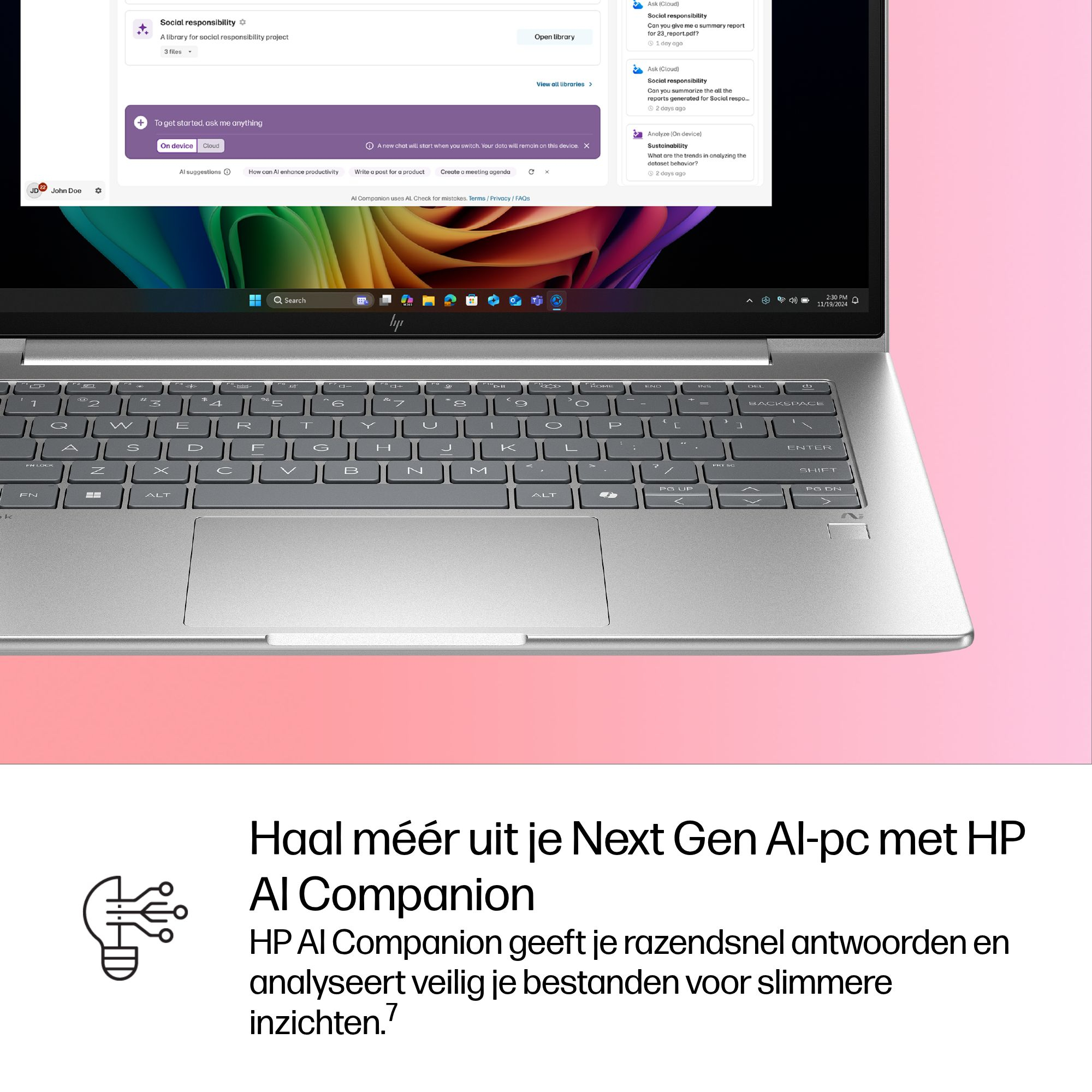 Werk overal zonder in te leveren op prestaties met Windows 11 en HP samenwerkings- en connectiviteitstechnologie. Microsoft Copilot helpt je bij het samenvatten en herschrijven van teksten, biedt slimme tips en laat je overzichtelijk werken.[5]