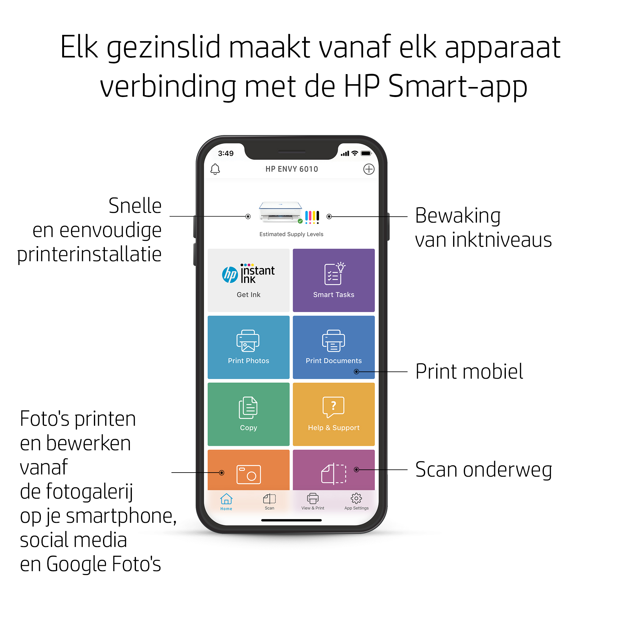 HP ENVY 6010 Draadloos All-in-One Kleur Printer, Instant Ink; Foto's printen