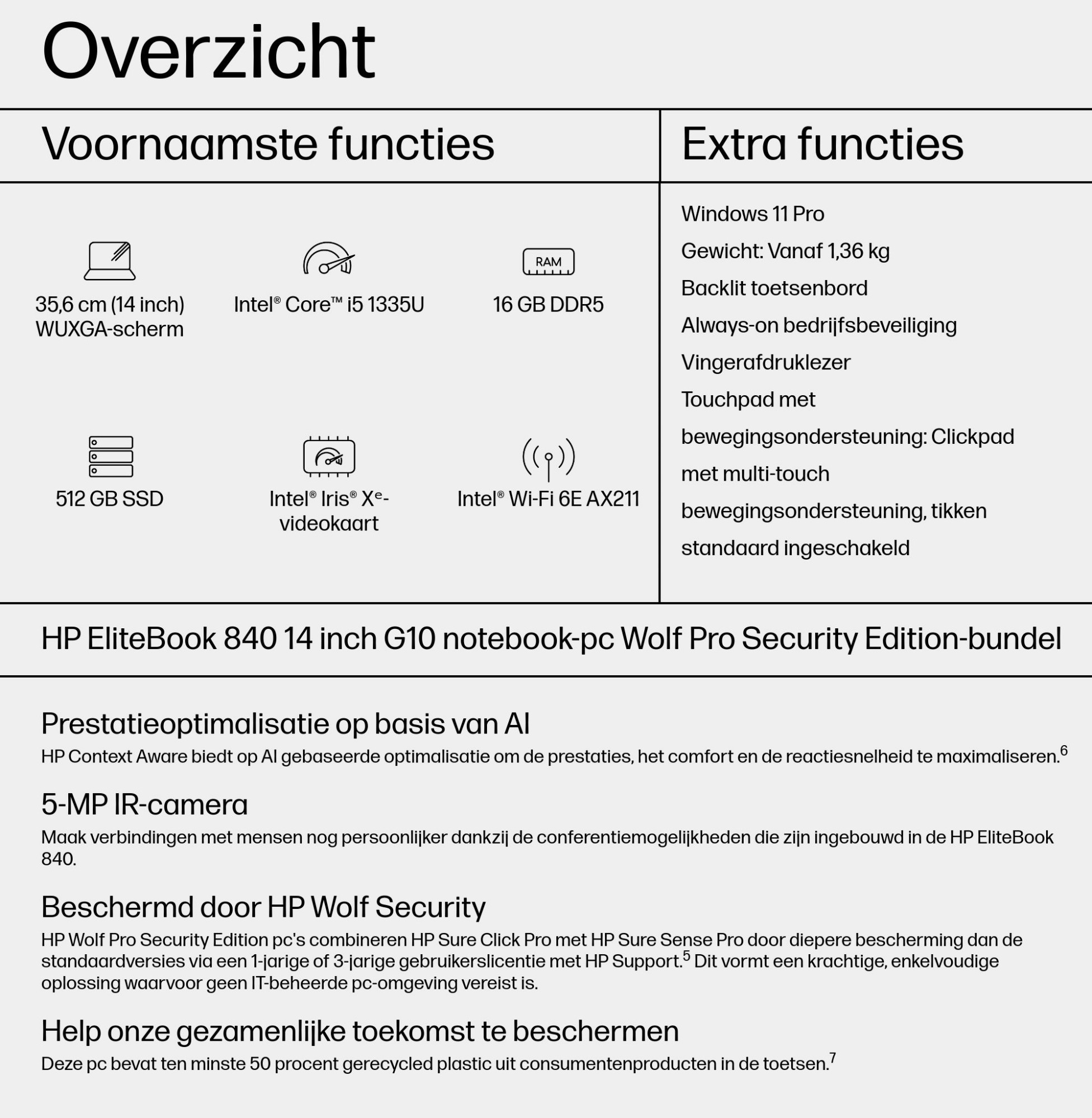 | Meegeleverde software | HP Wolf Pro Security-editie (1 jaar) |