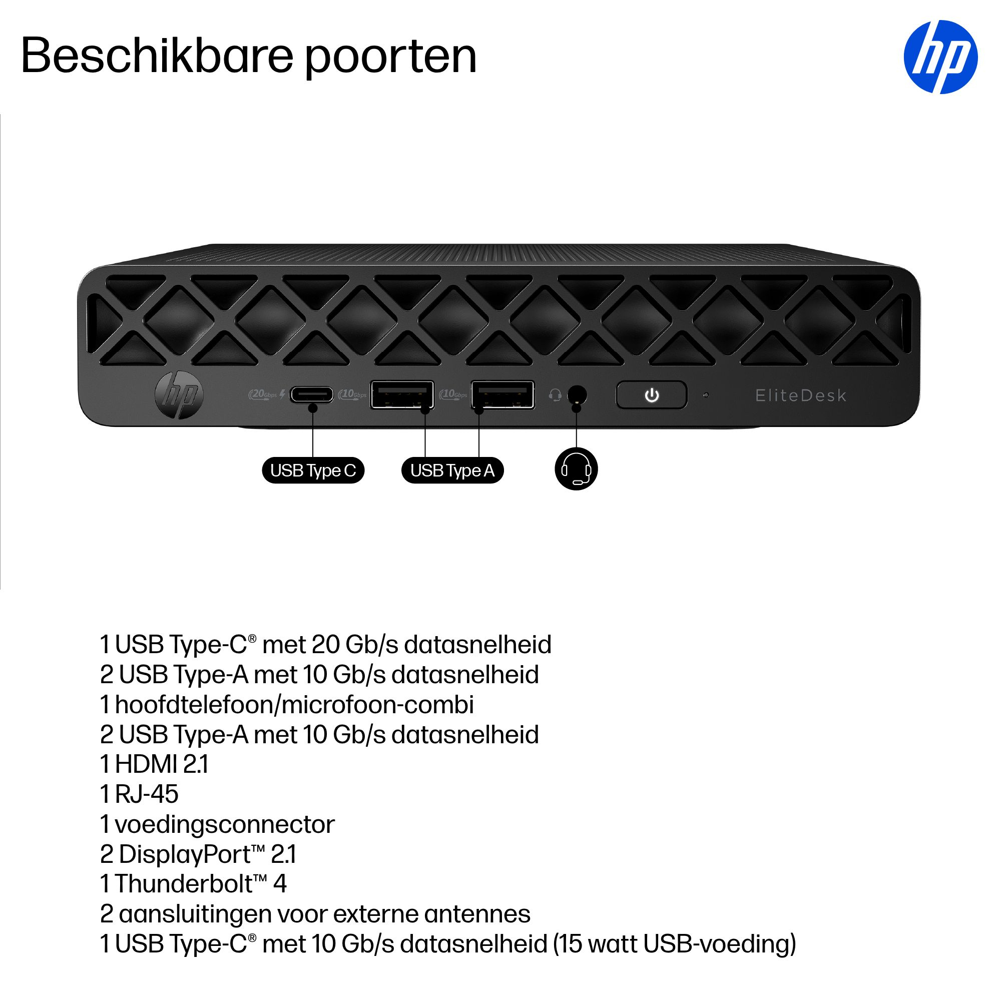 HP EliteDesk 8 Mini G1iU523516GB/512GBPC Intel Core Ultra 5 235 16 GB DDR5-SDRAM 512 GB SSD Windows 11 Pro Mini PC AI PC Zwart