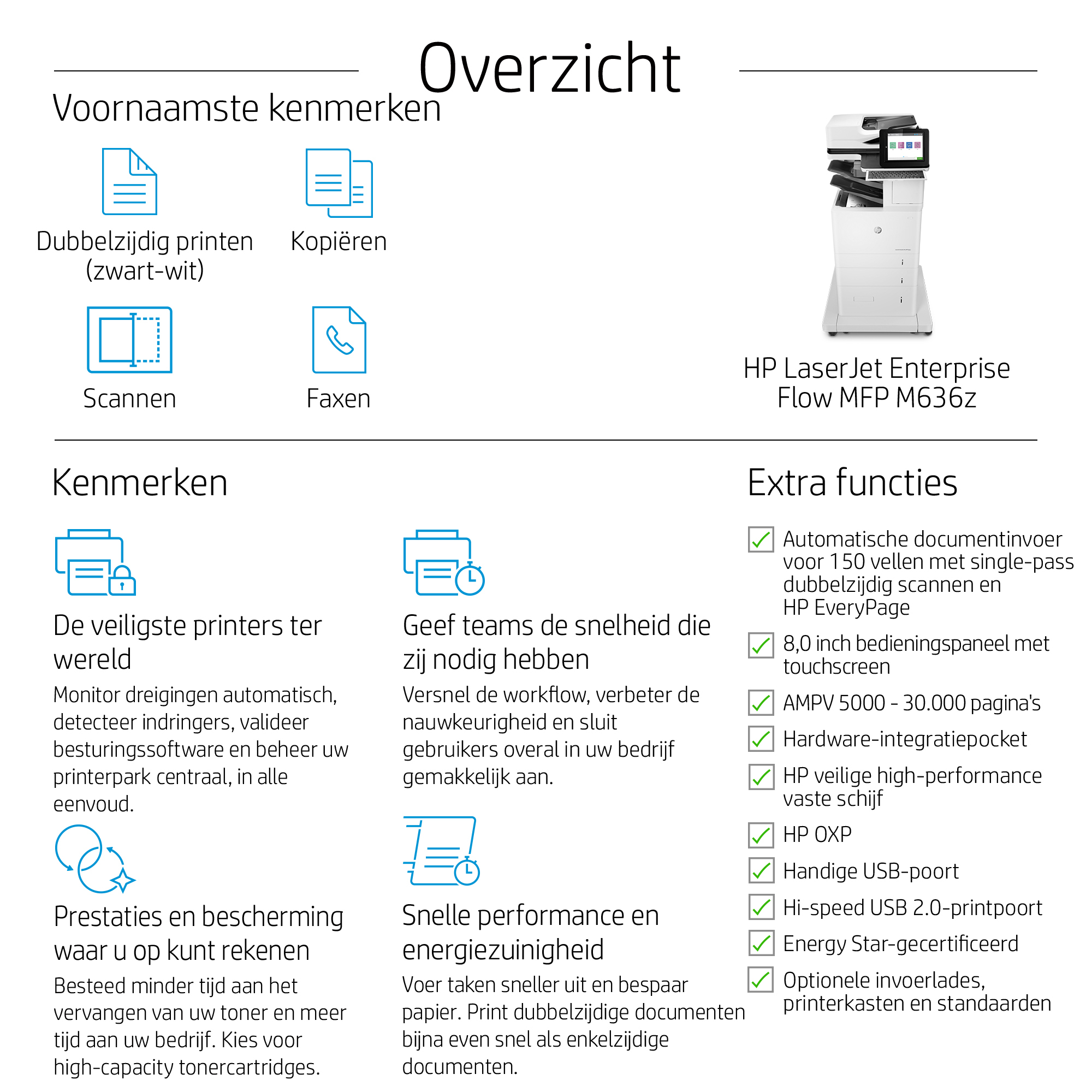 | Duplex functies | Printen, Kopiëren, Scannen |
