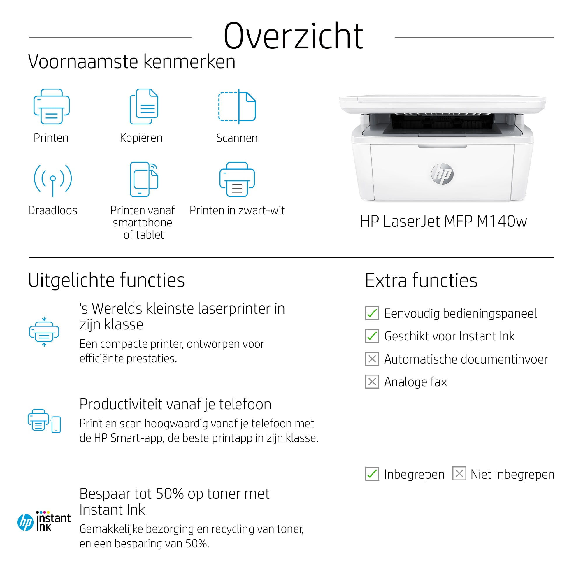 Efficiënte prestaties van HP's kleinste multifunctionele laserprinter.