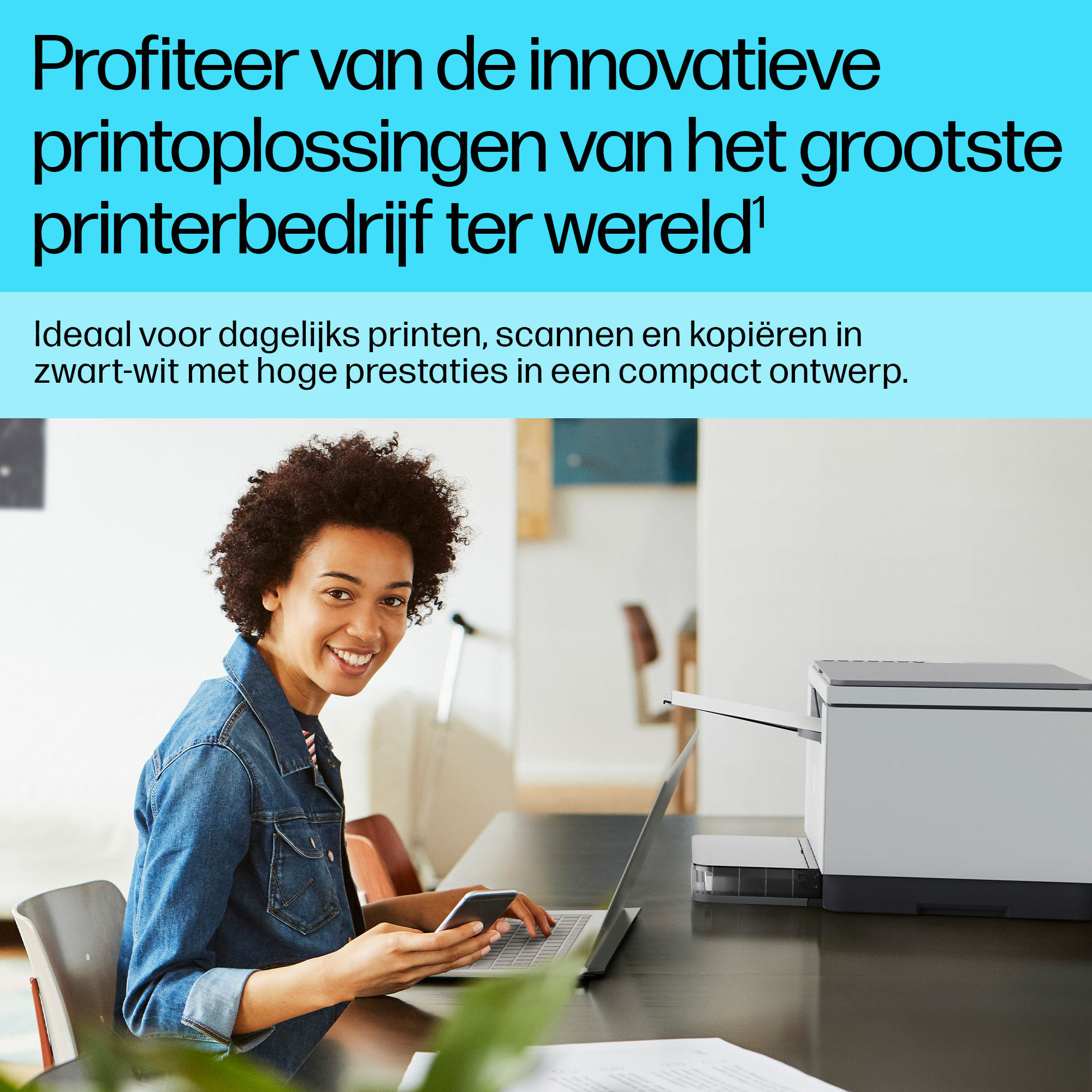 Een LaserJet die zo klein is dat hij bijna overal past.