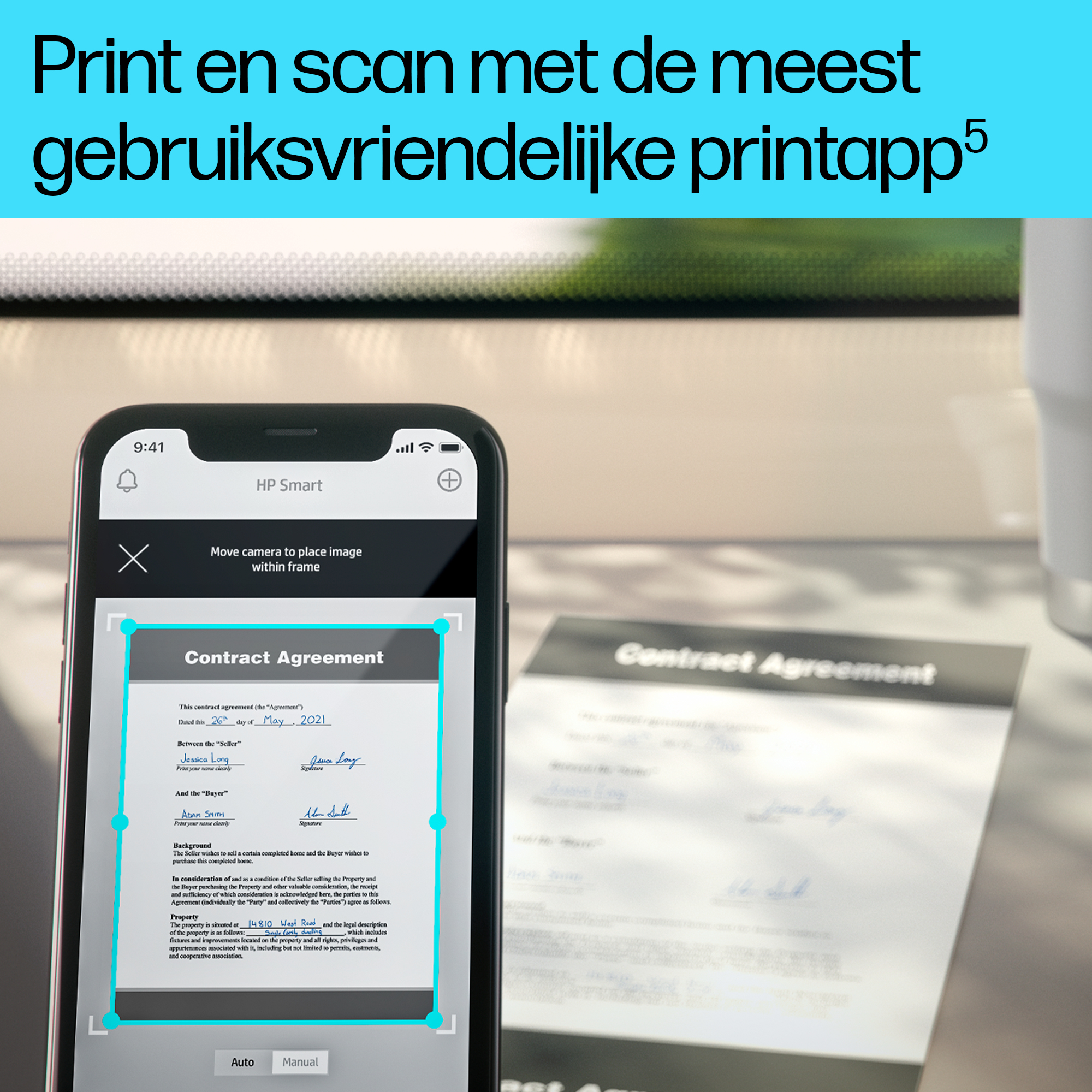 Scan in hoge kwaliteit en deel via Dropbox, Google Drive, e-mail of de cloud, bijna overal waar je bent met de HP app.[6]