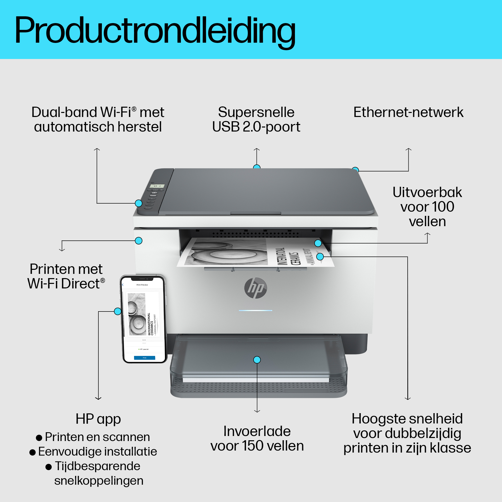 | Totale invoercapaciteit | 150 vel |