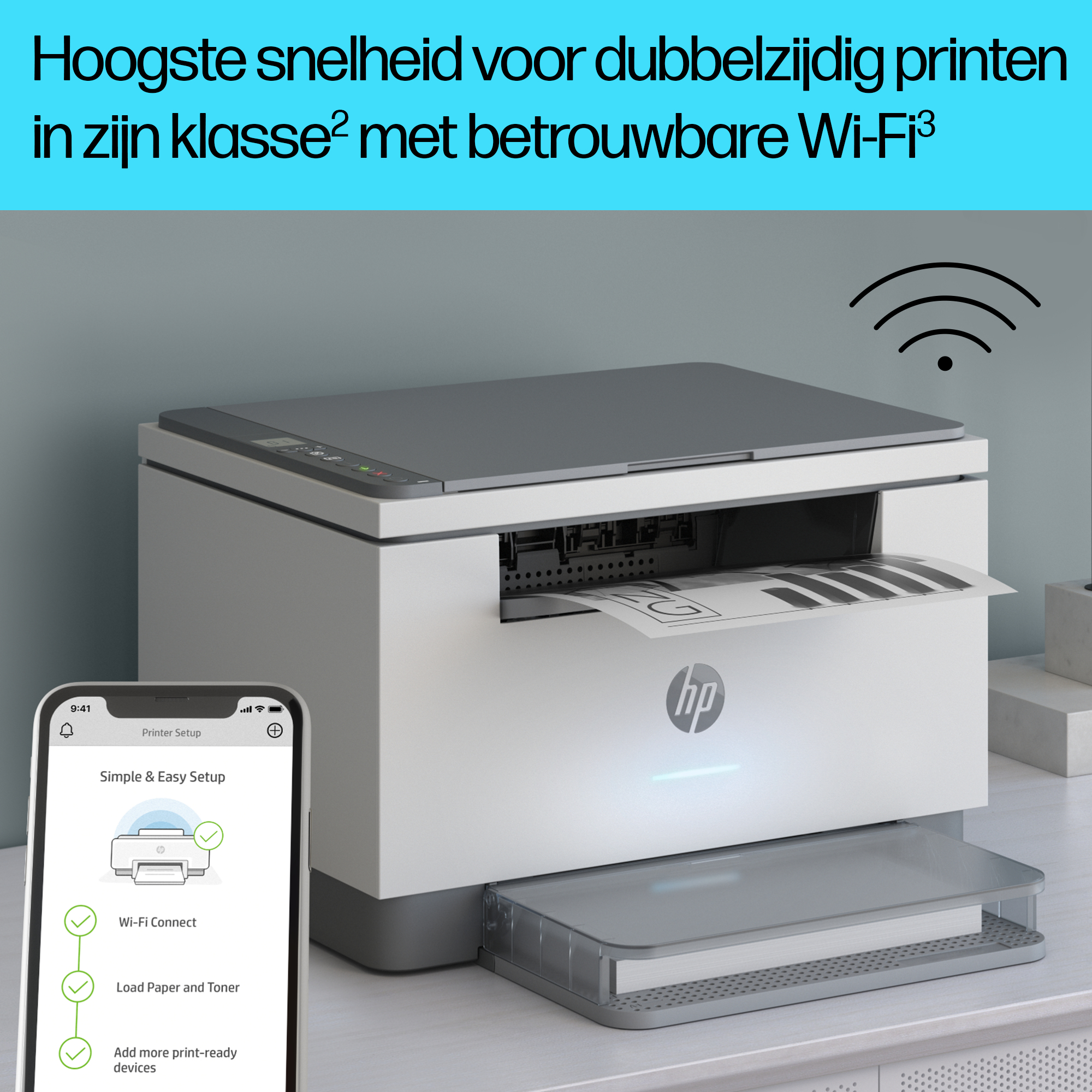 Ga snel van start met een eenvoudige installatie waarbij je stap voor stap begeleid wordt. Download de HP app, maak verbinding met een netwerk en deel je printer met al je apparaten.[6]