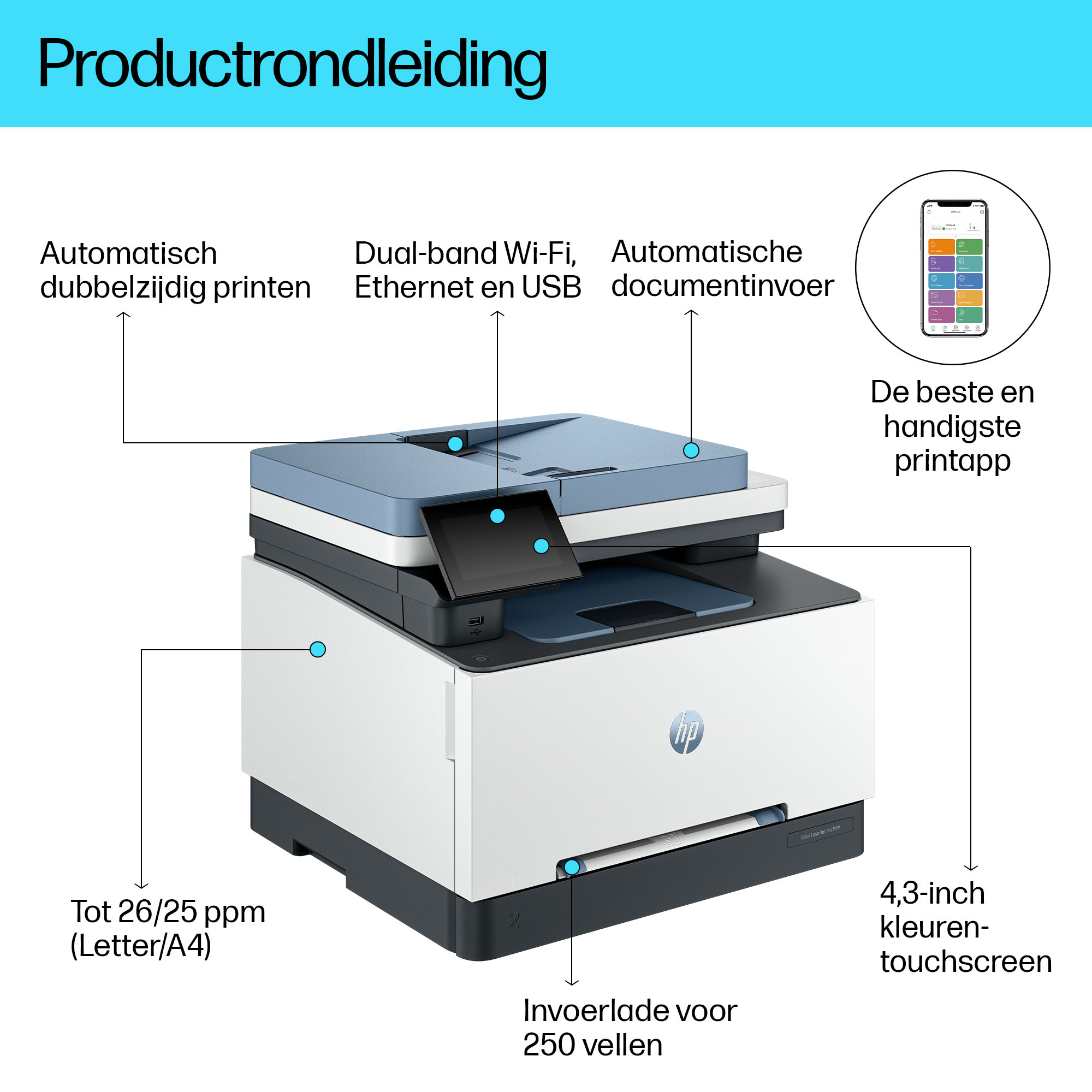 | Meegeleverde software | HP Printer Software downloadable from www.hp.com/hp-app |