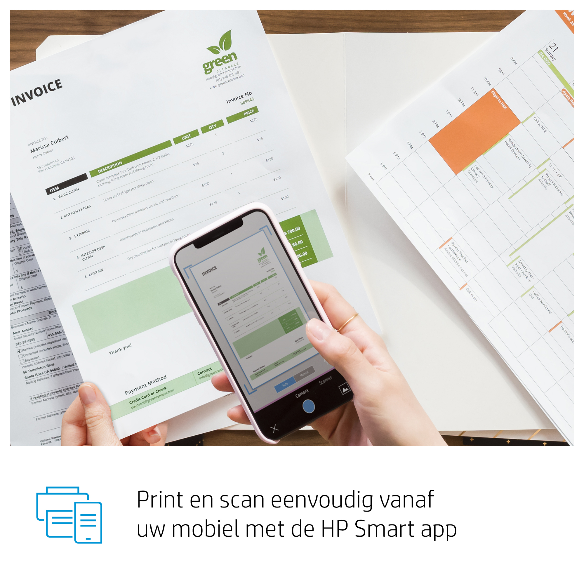 Met de HP app kun je eenvoudig printen en scannen vanaf je mobiele apparaat.<sup>[3]</sup><sup>[3,4]</sup>