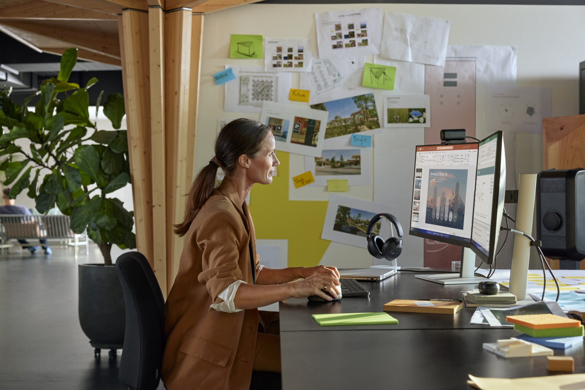 Richt je op wat echt belangrijk is en voorkom afleiding met een headset die rijke, heldere audio biedt voor gesprekken en muziek. Werk waar je wilt en blijf duidelijk verstaanbaar met 6 geïntegreerde microfoons en 4 extra microfoons ter ondersteuning van adaptieve ANC.