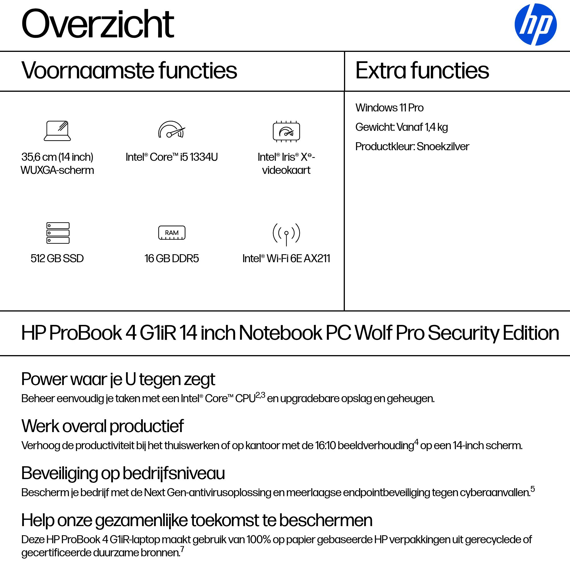 HP ProBook 4 PB4G1iR14 i5-1334U 14 16GB/512 PC NL Intel® Core™ i5 Laptop 35,6 cm (14") WUXGA DDR5-SDRAM 512 GB SSD Wi-Fi 6E (802.11ax) Windows 11 Pro Zilver