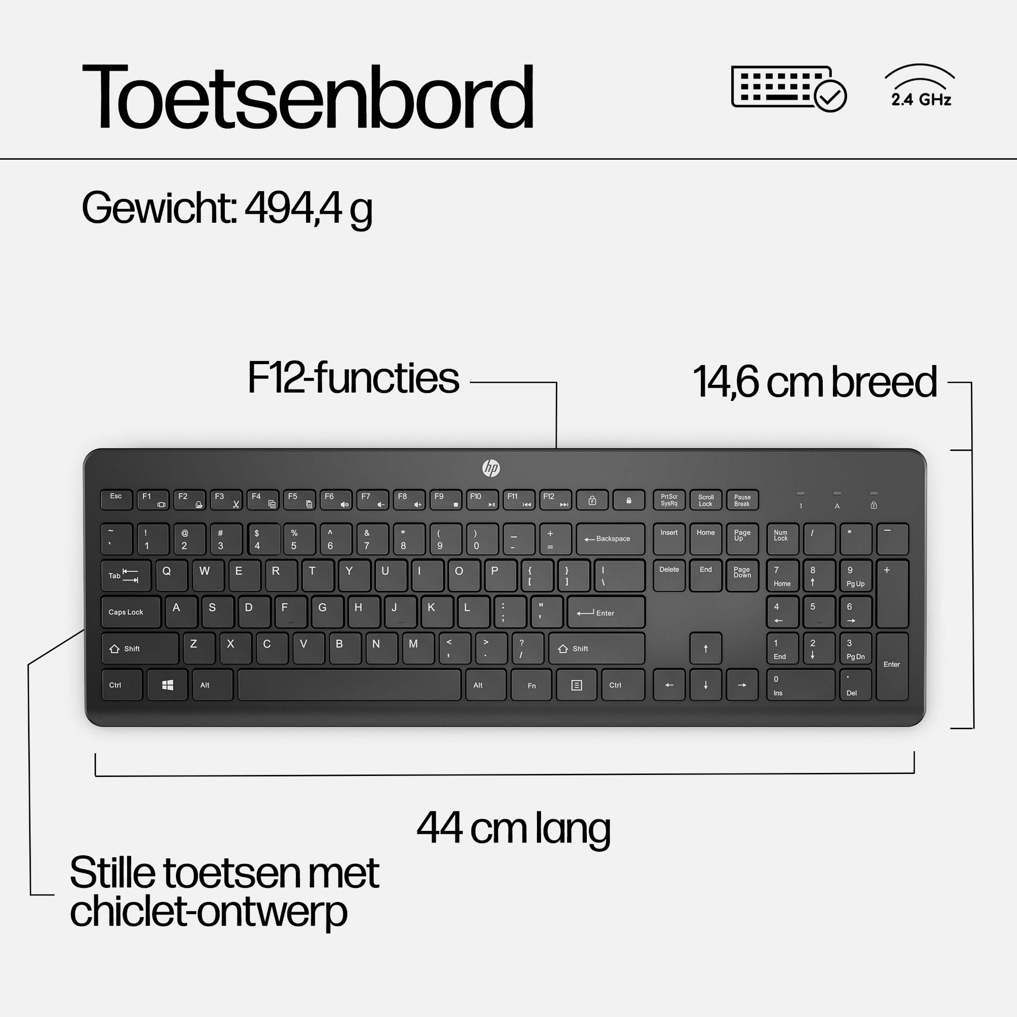 | Dimensies toetsenbord (BxDxH) | 440 x 146,2 x 27,6 mm |