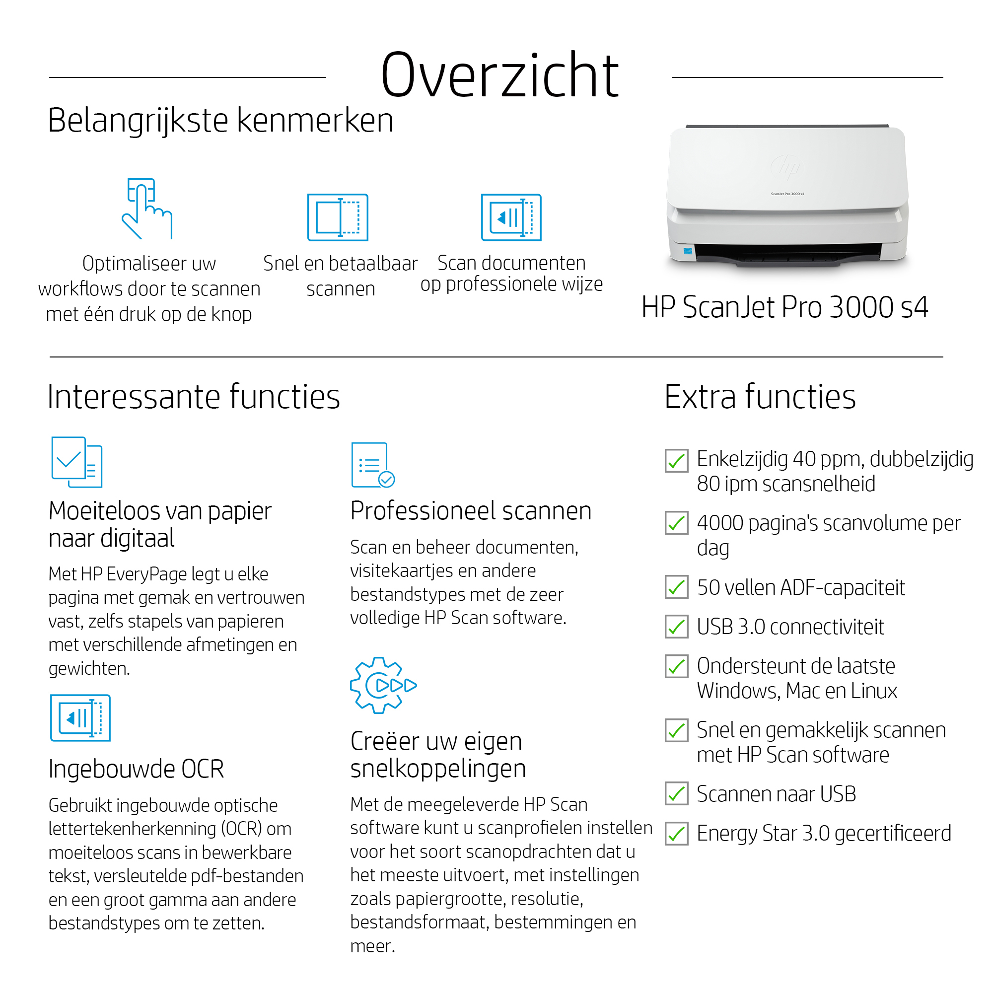 HP ScanJet Pro 3000 s4 Paginascanner 600 x 600 DPI A4 Zwart, Wit