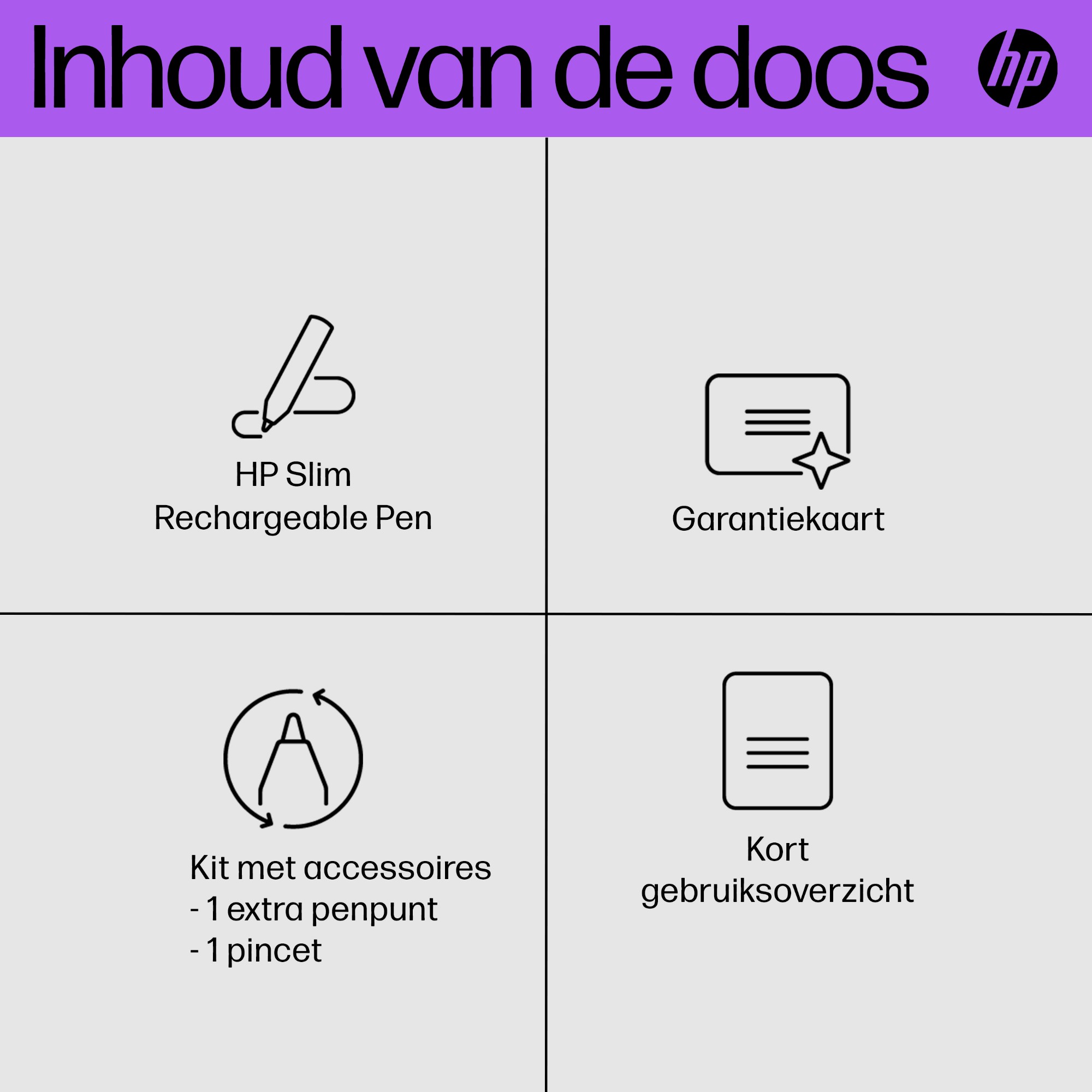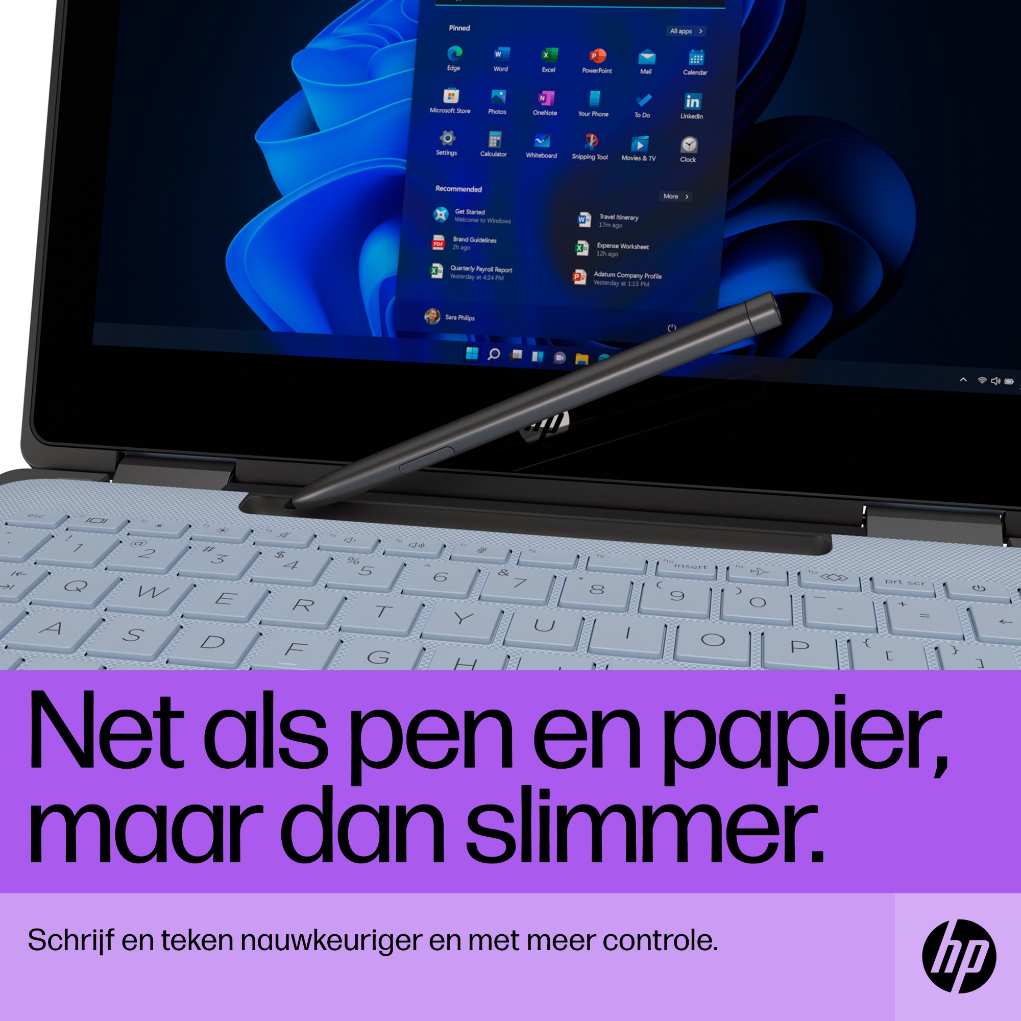 Schrijf en teken met gemak op het touchscreen dankzij de nauwkeurigheid tot op de penpunt en de drukgevoeligheid. Bewerk, teken, krabbel en maak aantekeningen met het natuurlijke gevoel en de controle van traditionele pen en papier, maar dan slimmer met HP's intuïtieve en snel oplaadbare stylus.