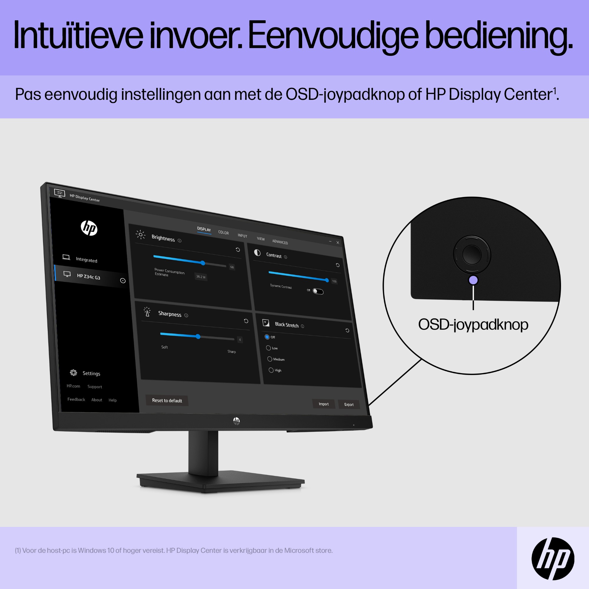 Maak je werkruimte zo eenvoudig mogelijk, zodat jij je kunt richten op waar je het beste in bent. Stel je monitor eenvoudig in door je instellingen aan te passen met de intuïtieve OSD-knop op het Joypad of beheer ze rechtstreeks vanaf het scherm met HP Display Center[2].