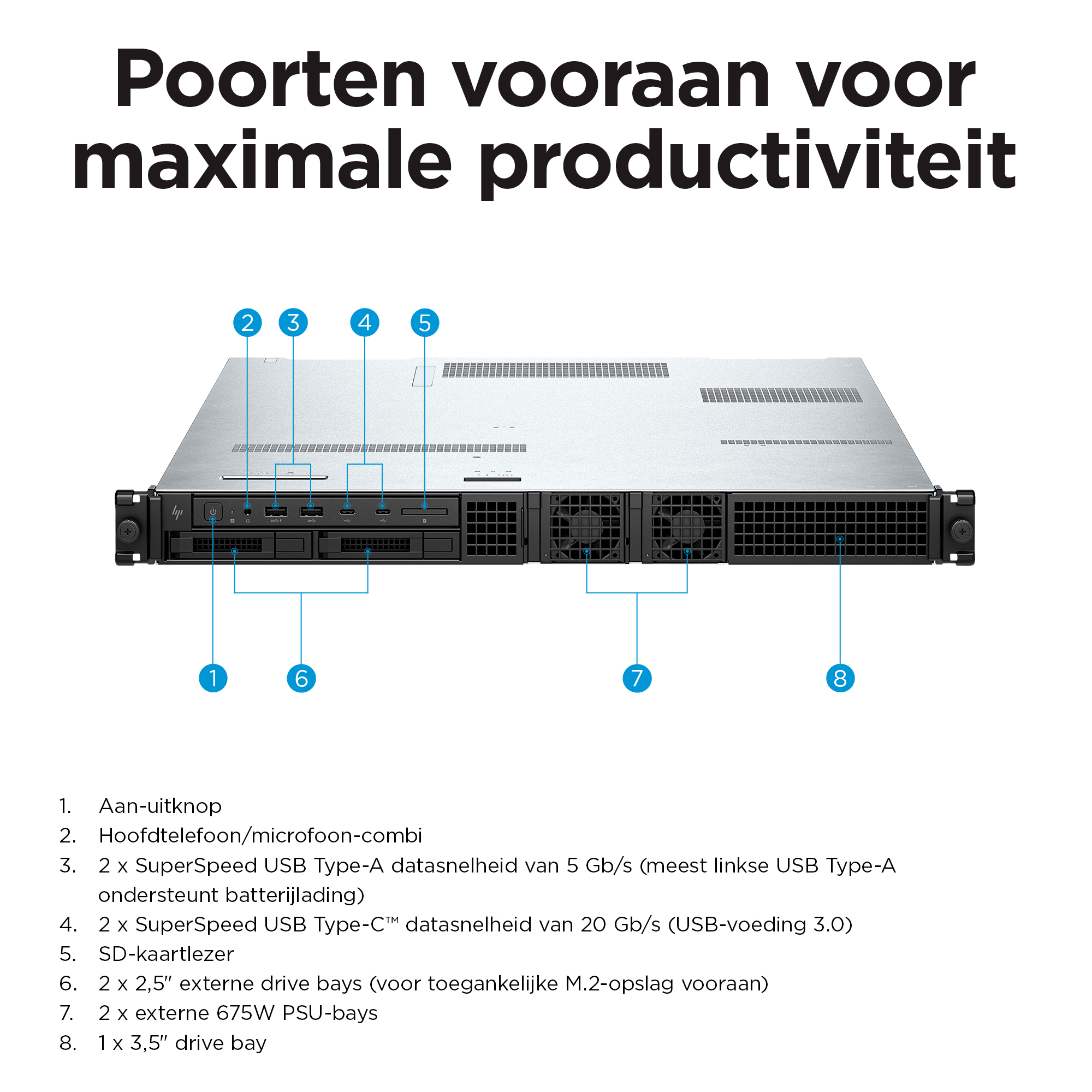 Geef flexibele medewerkers meer mogelijkheden met professionele Z by HP prestaties in een zeer dichte 1U-voetafdruk. Dit dunne powerhouse is speciaal ontworpen om meer units te plaatsen in één rack en levert de prestaties die jouw team nodig heeft. En dat allemaal met de mogelijkheid voor upgrades en uitbreidingen naarmate de computervereisten veranderen.