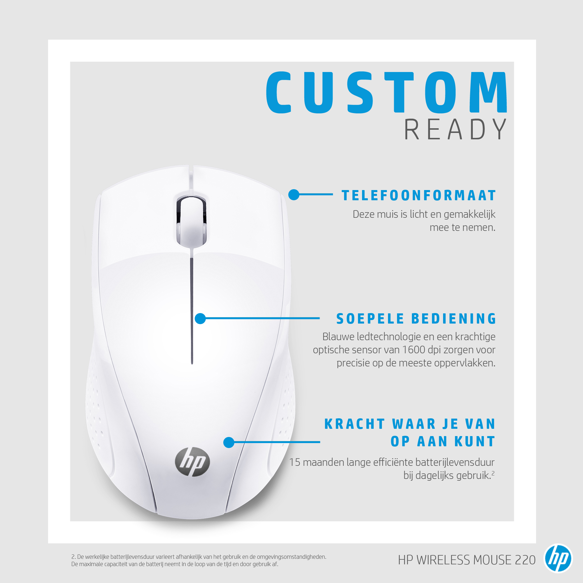 Betere verbindingen en beter communiceren, voor werk en vrije tijd. Deze eersteklas HP draadloze muis 220 is gemaakt volgens de strikte normen en richtlijnen van HP en biedt een modern design met tal van geavanceerde features.
