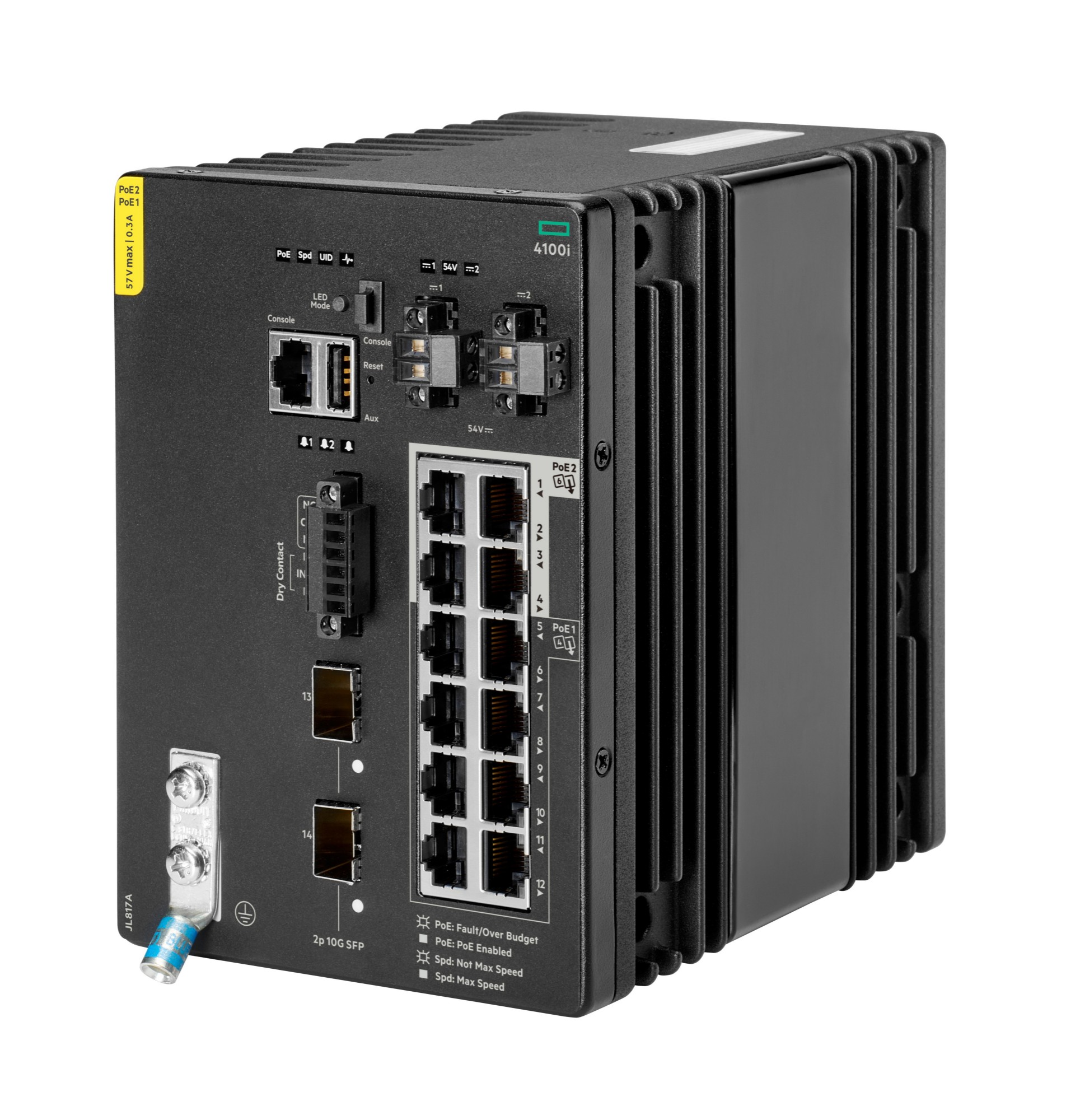 HPE Aruba Networking CX 4100i 12p 1GbE 8p Class4 PoE and 4p Class6 PoE 2p SFP+ DIN Mount Switch, Managed, L2, Gigabit Ethernet (10/100/1000), Power over Ethernet (PoE), Rack-montage, 4U
