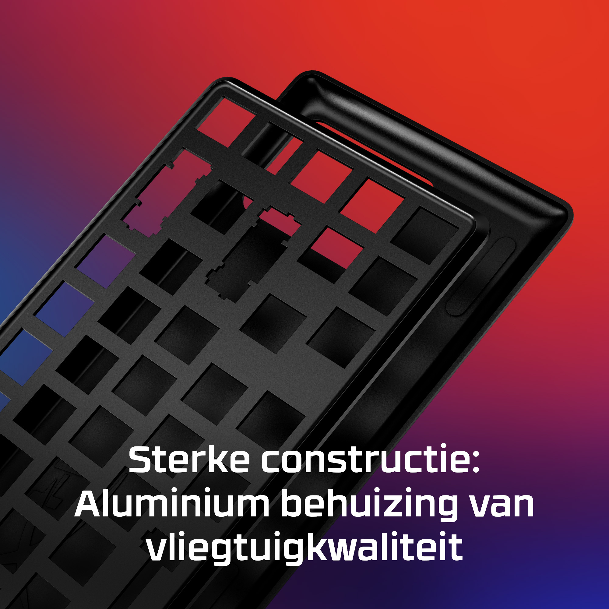 De aluminium behuizing houdt het toetsenbord structureel gezond en stabiel wanneer de actie intens wordt en het spel erom hangt; strijd na strijd, avond na avond.