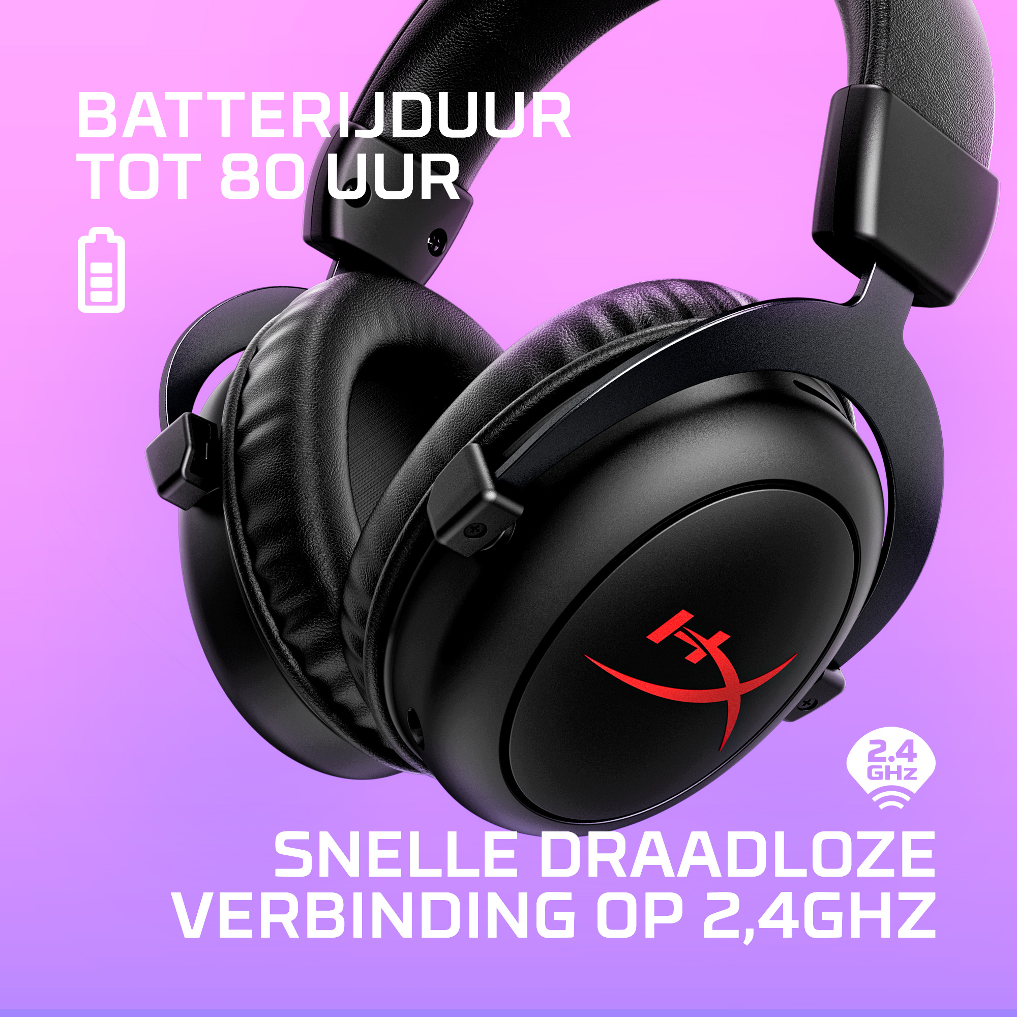 Voor gamers die op zoek zijn naar een comfortabele 2,4-GHz draadloze hoofdtelefoon voor een scherpe prijs is de HyperX Cloud II Core Wireless hoofdtelefoon een uitstekende keus. Met een batterijduur van tot 80 uur[1] heeft de draadloze Cloud II Core meer dan genoeg batterijduur om meerdere dagen te gamen. Geniet nog meer van je games met het prachtige geluid van DTS Headphone:X Spatial Audio[2] en de 53-mm drivers van de Cloud II Core. De zachte oorschelpen van memory foam en het comfort waar Cloud om bekend staat zorgen ervoor dat je gefocust blijft tijdens je game en niet wordt afgeleid. De kabels kunnen weg - dankzij de snelle verbinding van 2,4 GHz hoef je niet bang te zijn dat je geen verbinding meer hebt. Demp eenvoudig je microfoon en pas het volume van de hoofdtelefoon aan met de snelle toegang tot de knoppen direct op de oorschelp.