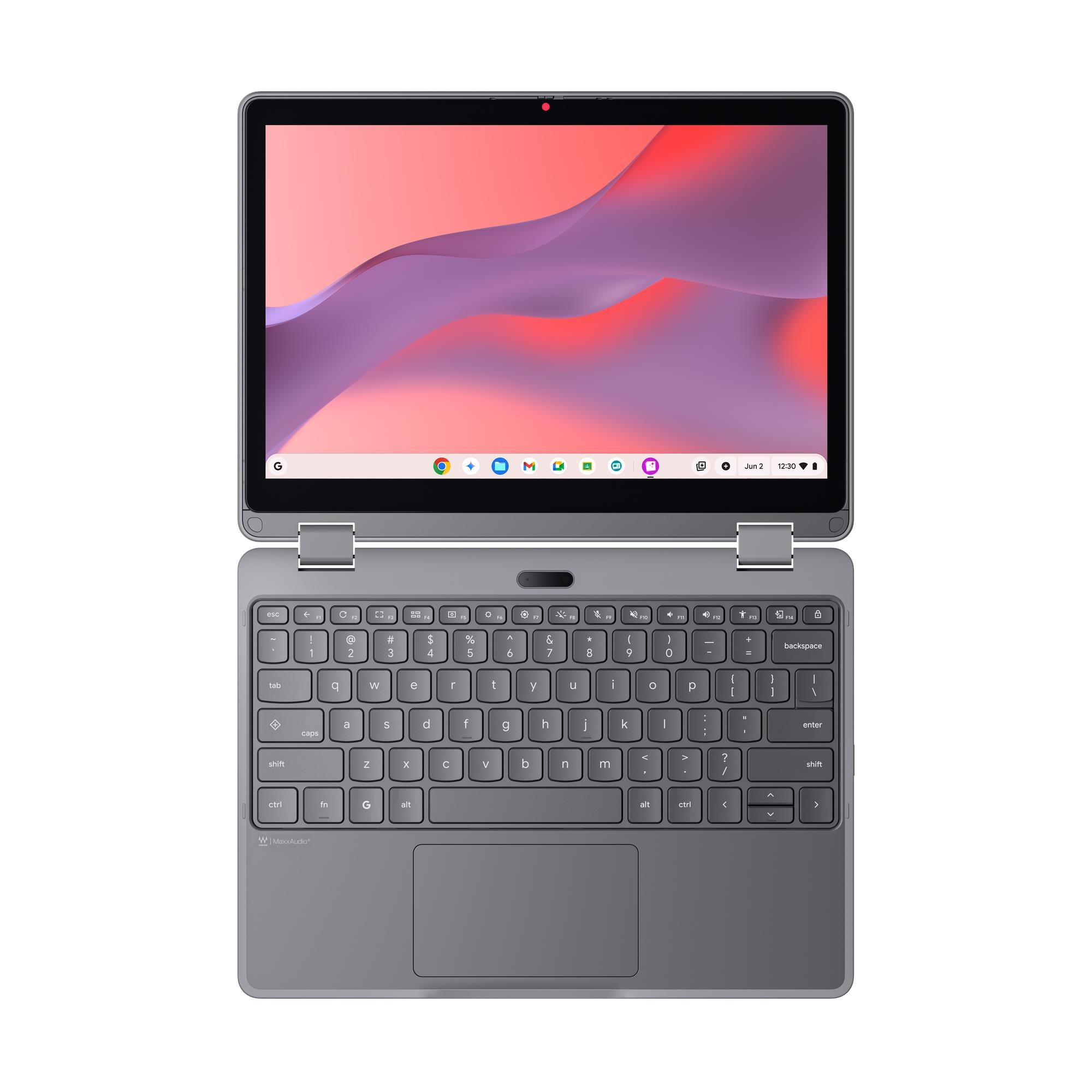 Lenovo Chrome 500e 2in1 G5 M89. Type product: Chromebook, Vormfactor: Convertible (Map). Processorfamilie: MediaTek Kompanio, Processormodel: 540. Beeldschermdiagonaal: 31 cm (12.2"), HD type: WUXGA, Resolutie: 1920 x 1200 Pixels, Touchscreen. Intern geheugen: 8 GB, Intern geheugentype: LPDDR5x-SDRAM. Totale opslagcapaciteit: 64 GB, Opslagmedia: UFS. On-board graphics adapter model: ARM Mali-G57 MC2. Inclusief besturingssysteem: ChromeOS. Kleur van het product: Grijs