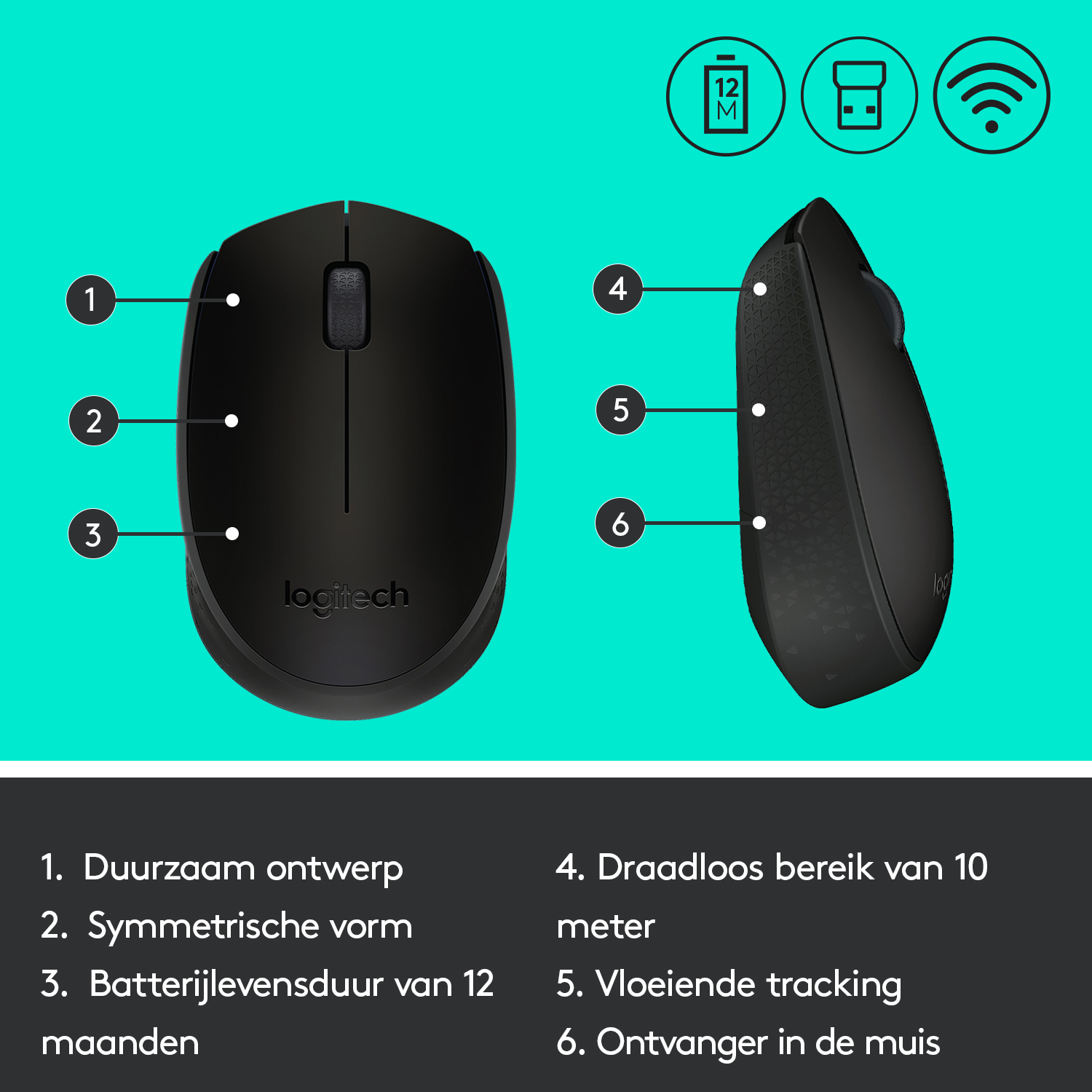De M171 Wireless Mouse is 100% plug-and-play. Sluit de ontvanger gewoon op een USB-poort op uw computer aan en begin de muis direct te gebruiken. U hoeft de muis niet te koppelen en u hoeft geen software te downloaden om de muis te kunnen gebruiken. 1