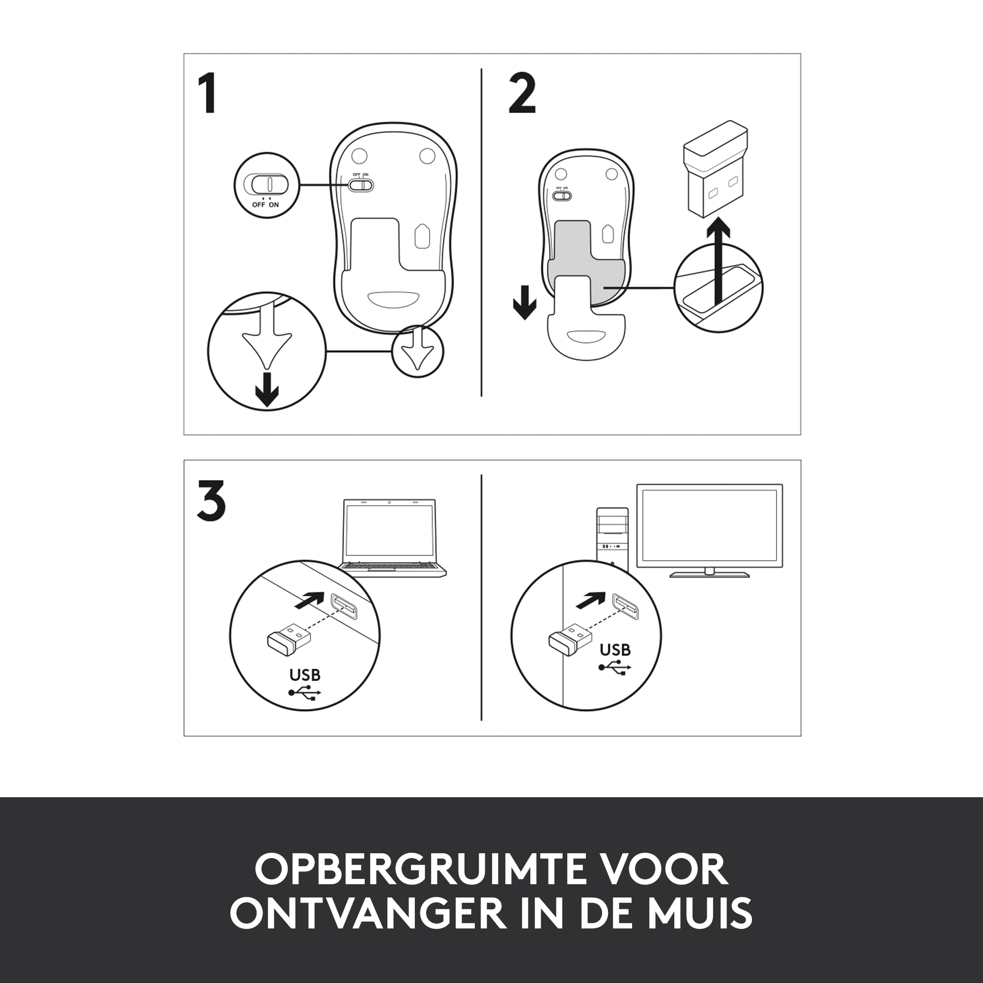 M185 staat altijd voor u klaar. Sluit de ontvanger aan op de USB-poort van uw apparaat om binnen enkele seconden te beginnen met werken. Het kleine formaat en de soepele cursorbesturing maken hem uiterst geschikt voor kleine werkruimtes en volle bureaus.