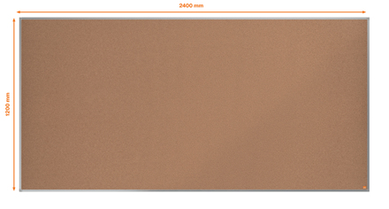 Nobo 1915348. Soort: Vast bulletinboard, Kleur van het product: Bruin, Materiaal: Kurk. Breedte: 2410 mm, Hoogte: 1194 mm, Diepte: 14 mm