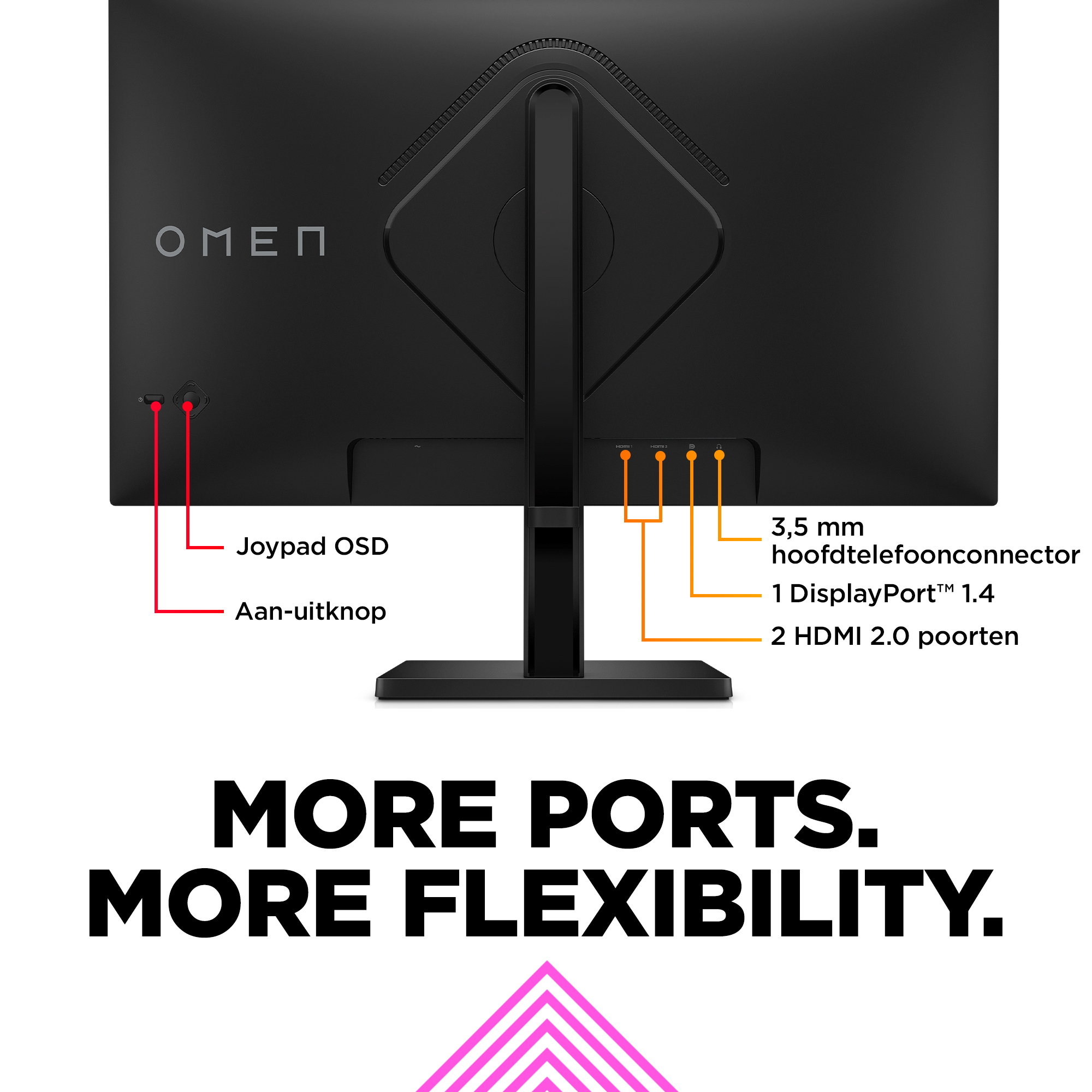 Bereik nieuwe mogelijkheden met de OMEN by HP 27 inch QHD 165 Hz gamingmonitor. Dankzij de snelle prestaties en levendige kleuren ga je helemaal op in de games die je het liefst speelt, terwijl hij door het slanke ontwerp geweldig staat op je bureau.