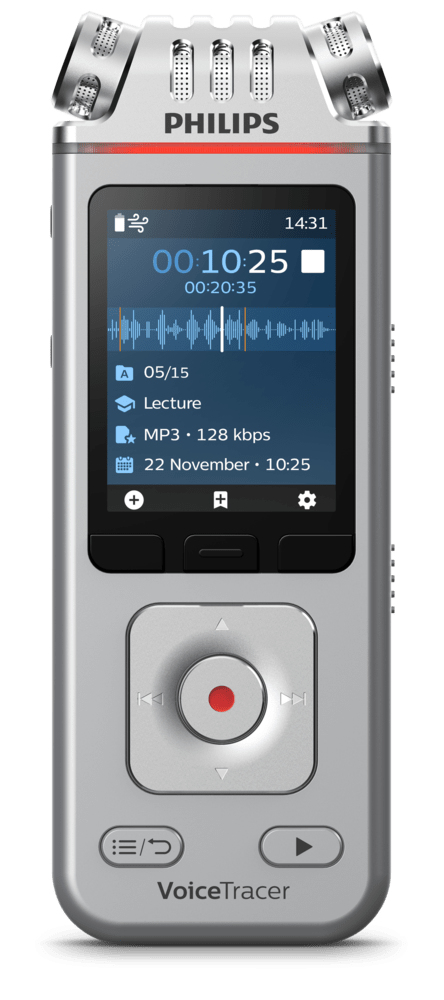 Philips Voice Tracer DVT4110/00. Maximale opneem tijd: 36 uur, Opname modes: Stereo (ST), Ondersteund audioformaat: MP3, WAV. Type beeldscherm: LCD, Resolutie: 240 x 320 Pixels, Beeldschermdiagonaal: 5,08 cm (2"). Uitgangsvermogen: 200 mW. Interface: USB, USB-connectortype: USB Type-C. Batterijtechnologie: Lithium-Polymeer (LiPo), Recording battery life: 36 uur, Capaciteit van de accu/batterij: 1000 mAh