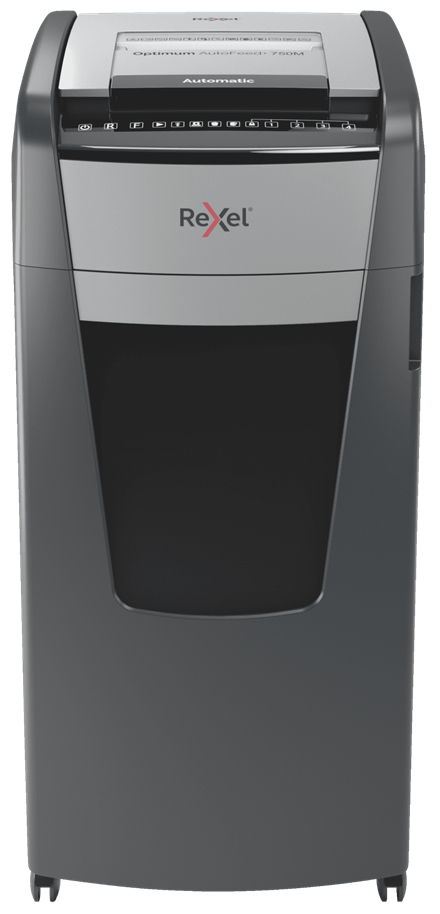 Rexel AutoFeed+ 750M. Soort vernietiger: Microversnippering, Werkbreedte: 23 cm, Vernietigt tot grootte: 2x15 mm. Breedte: 510 mm, Diepte: 570 mm, Hoogte: 1062 mm