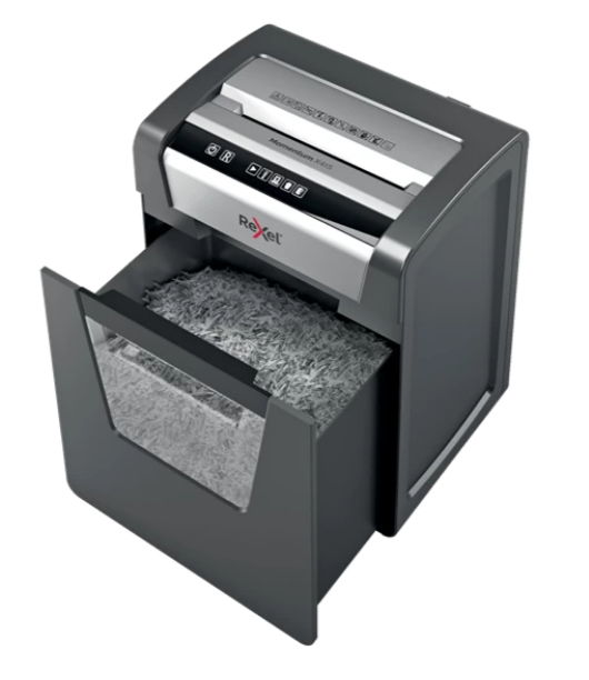Rexel X415. Soort vernietiger: Kruisversnippering, Werkbreedte: 22,3 cm, Vernietigt tot grootte: 4x40 mm. Breedte: 370 mm, Diepte: 279 mm, Hoogte: 465 mm