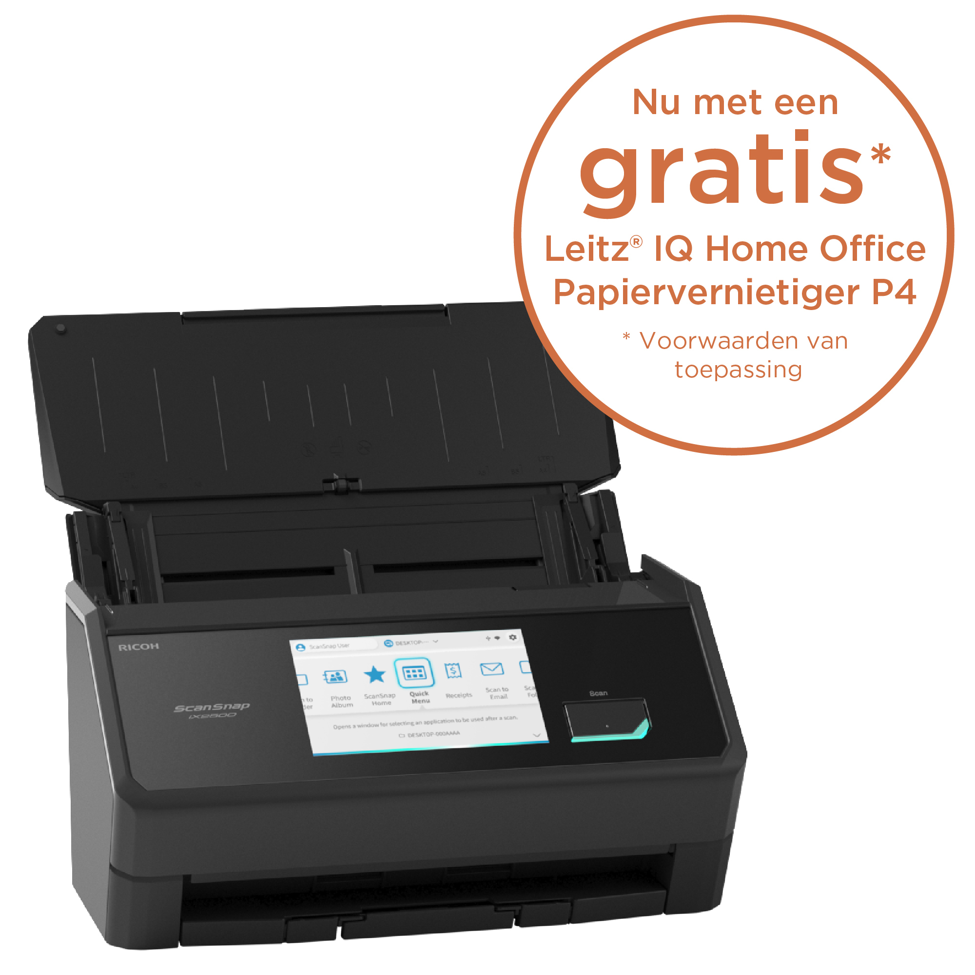 Van nu tot 18 januari 2026, bieden we een gratis* Leitz® IQ Home Office Papiervernietiger P4 aan wanneer u de ScanSnap iX2500 koopt.<br>Aanbieding onder voorwaarden. Claim de gratis versnipperaar - https://scanit-shredit.pfuemea3.com/nl/#claimform