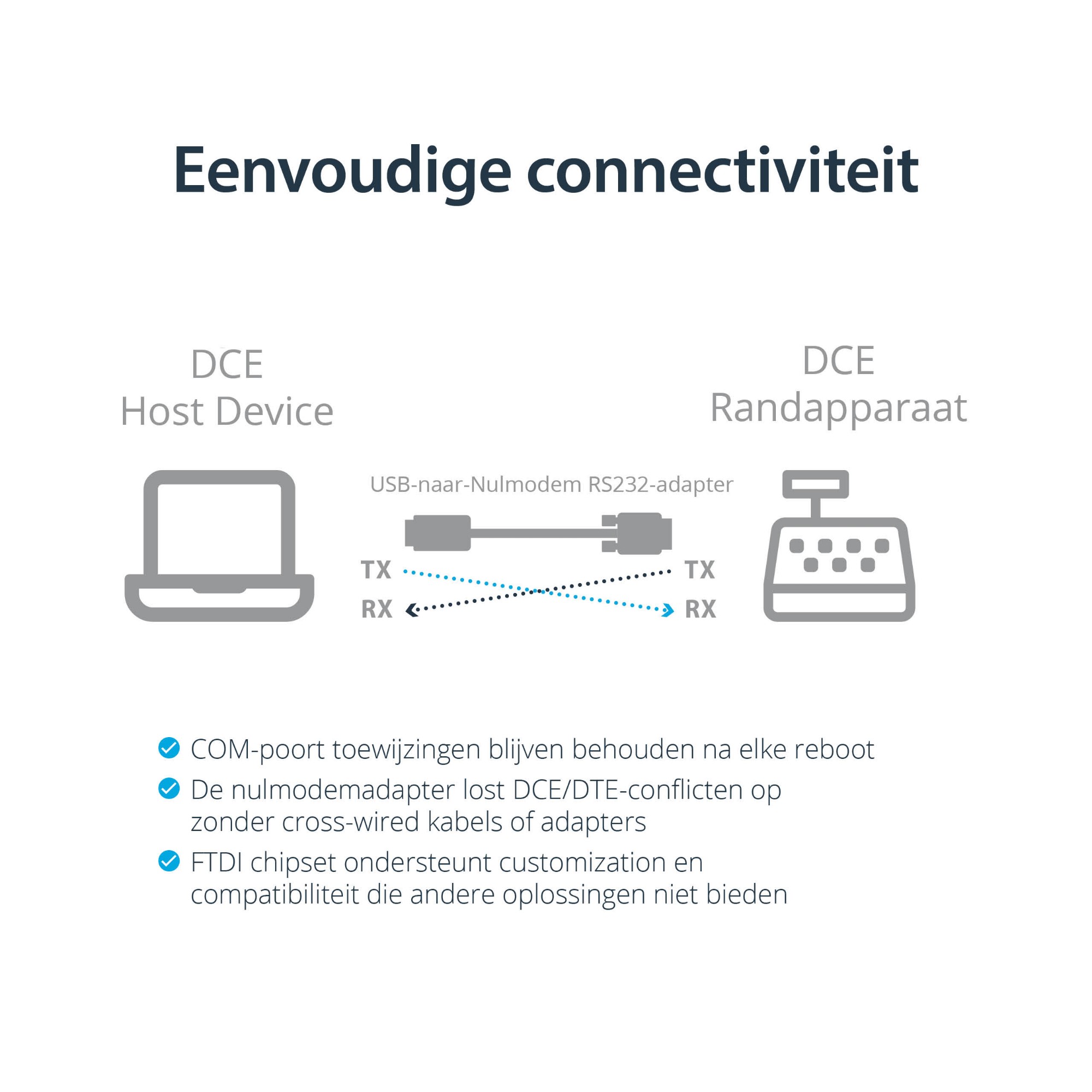 StarTech.com 1-Port USB naar Nulmodem RS232 DB9 Seriële DCE Adapterkabel met FTDI (ICUSB232FTN)