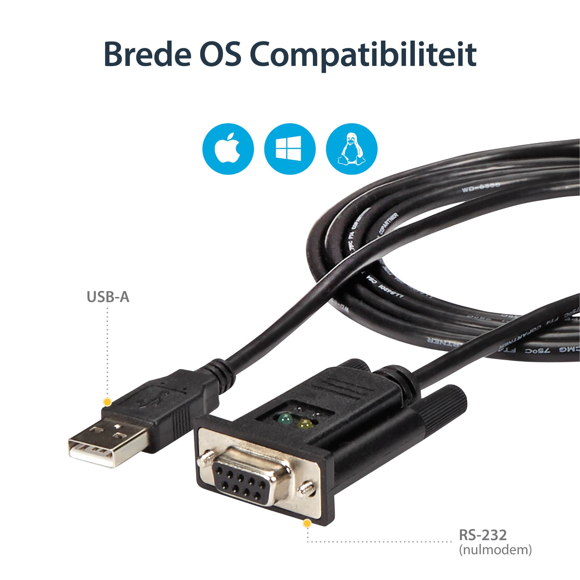 StarTech.com 1-Port USB naar Nulmodem RS232 DB9 Seriële DCE Adapterkabel met FTDI