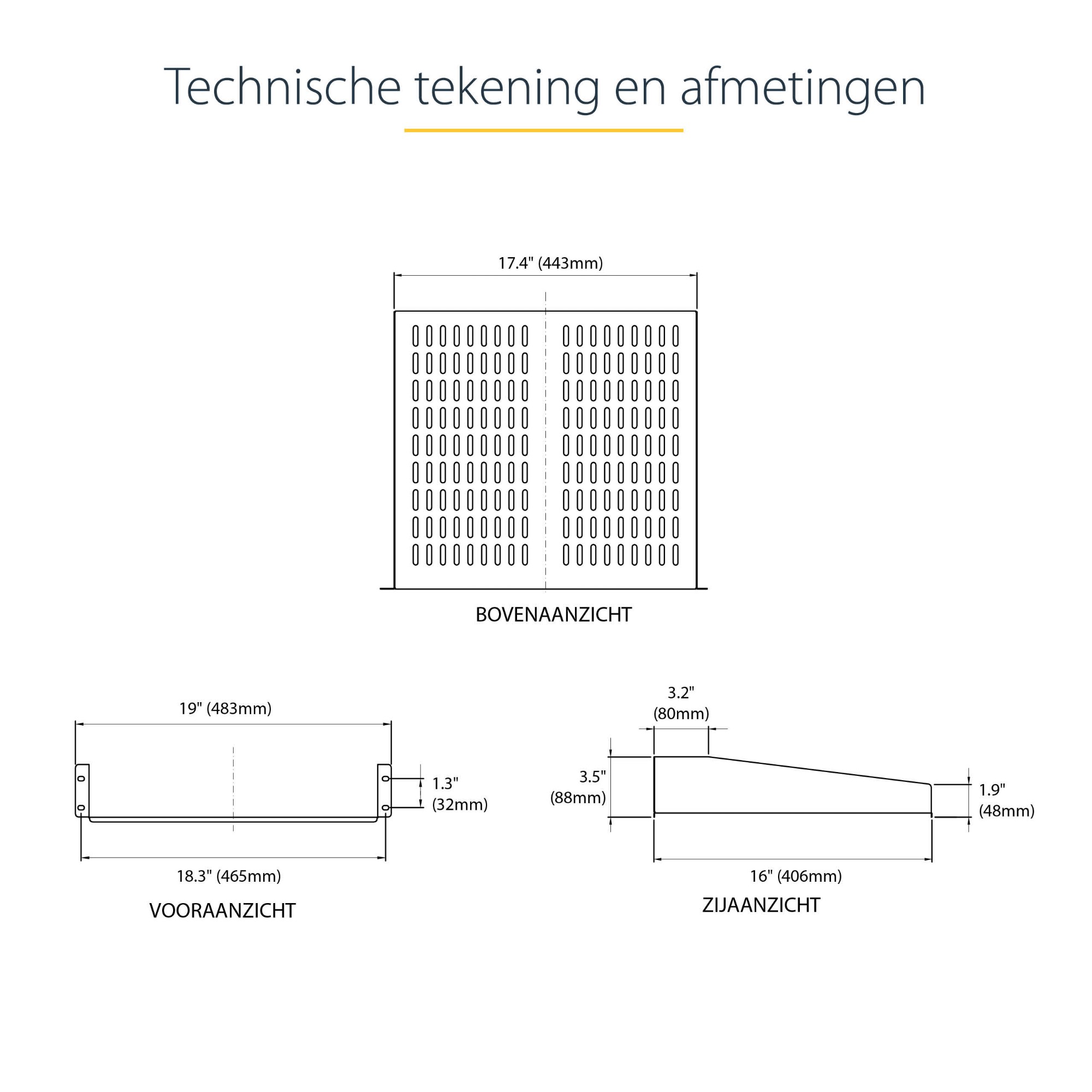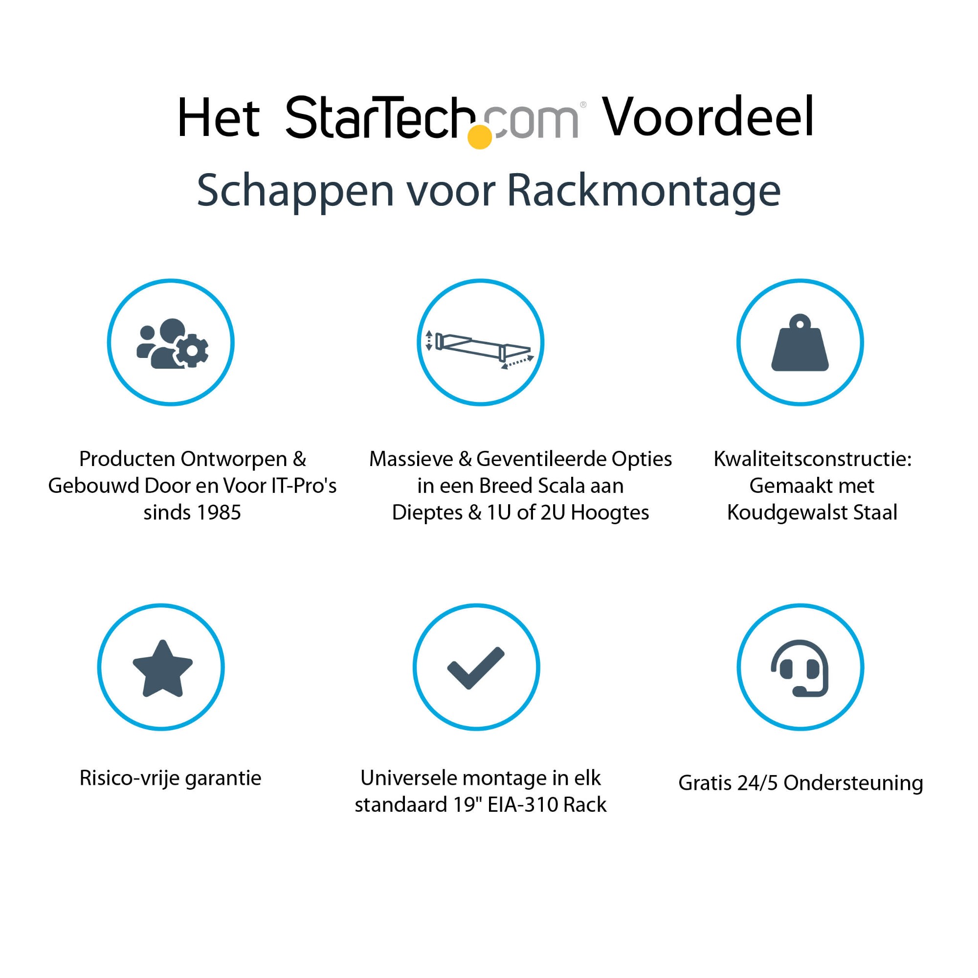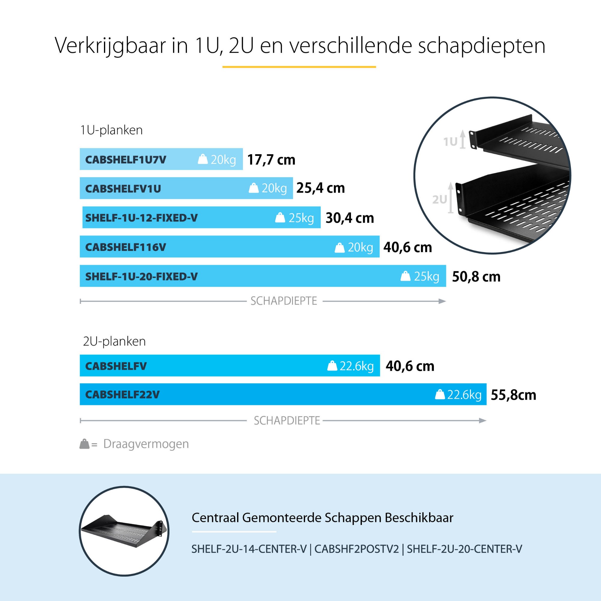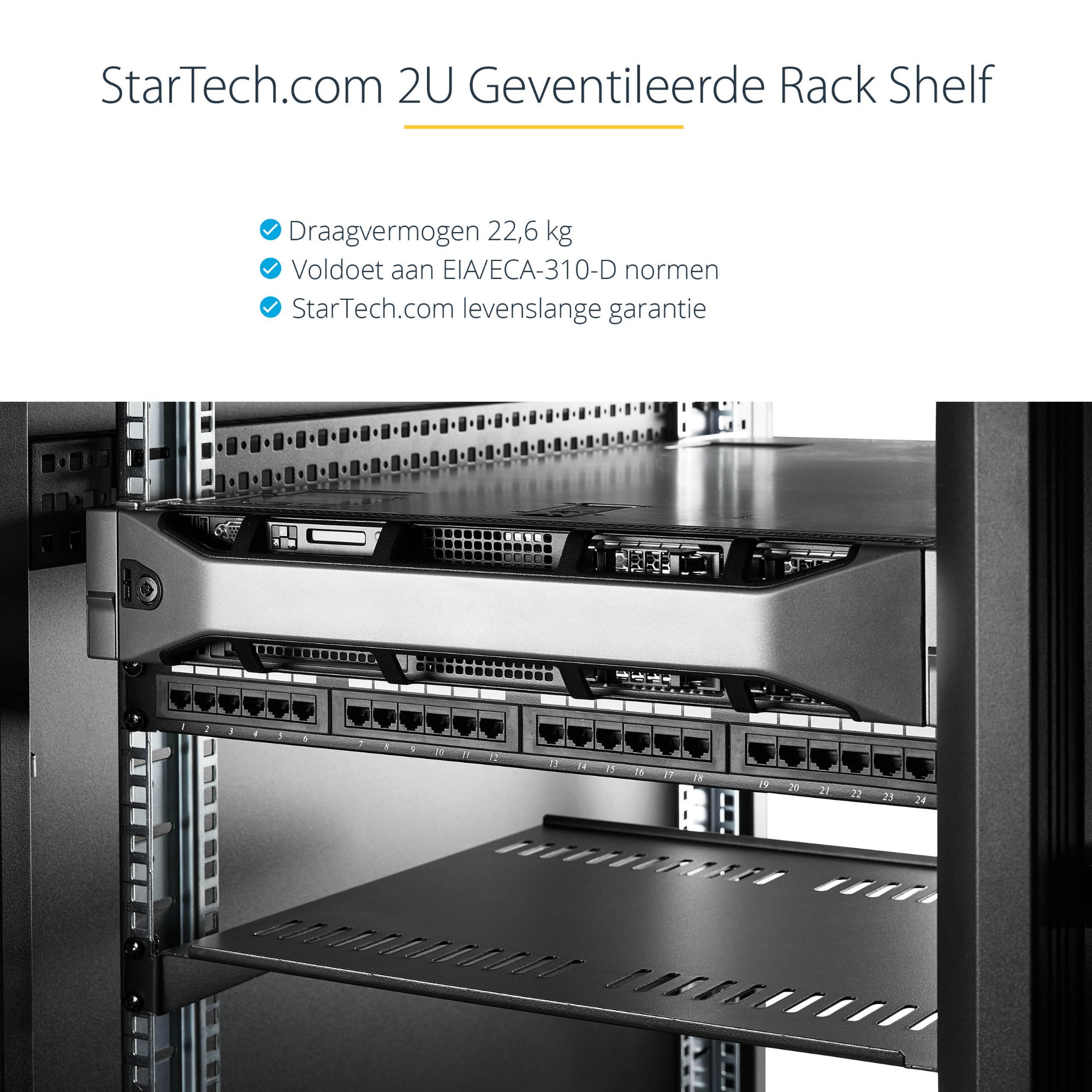 StarTech.com 2U Server Rack Schap - Universele Geventileerde Rack Mount Cantilever Shelf voor 19" Netwerk Kast & Apparatuur - Heavy Duty Staal - Capaciteit 23kg - Diepte 40cm (16”) - Zwart (CABSHELFV)