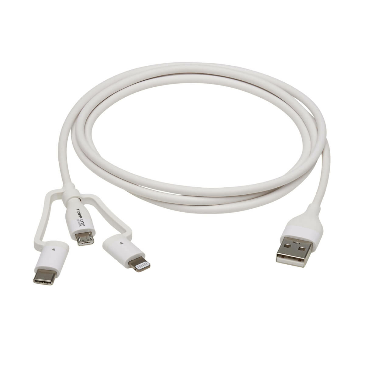 Tripp Lite M101AB-004-LMCW, Wit, USB A, USB-C/micro-USB B/Lightning, 1,2 m, Mannelijk, Mannelijk