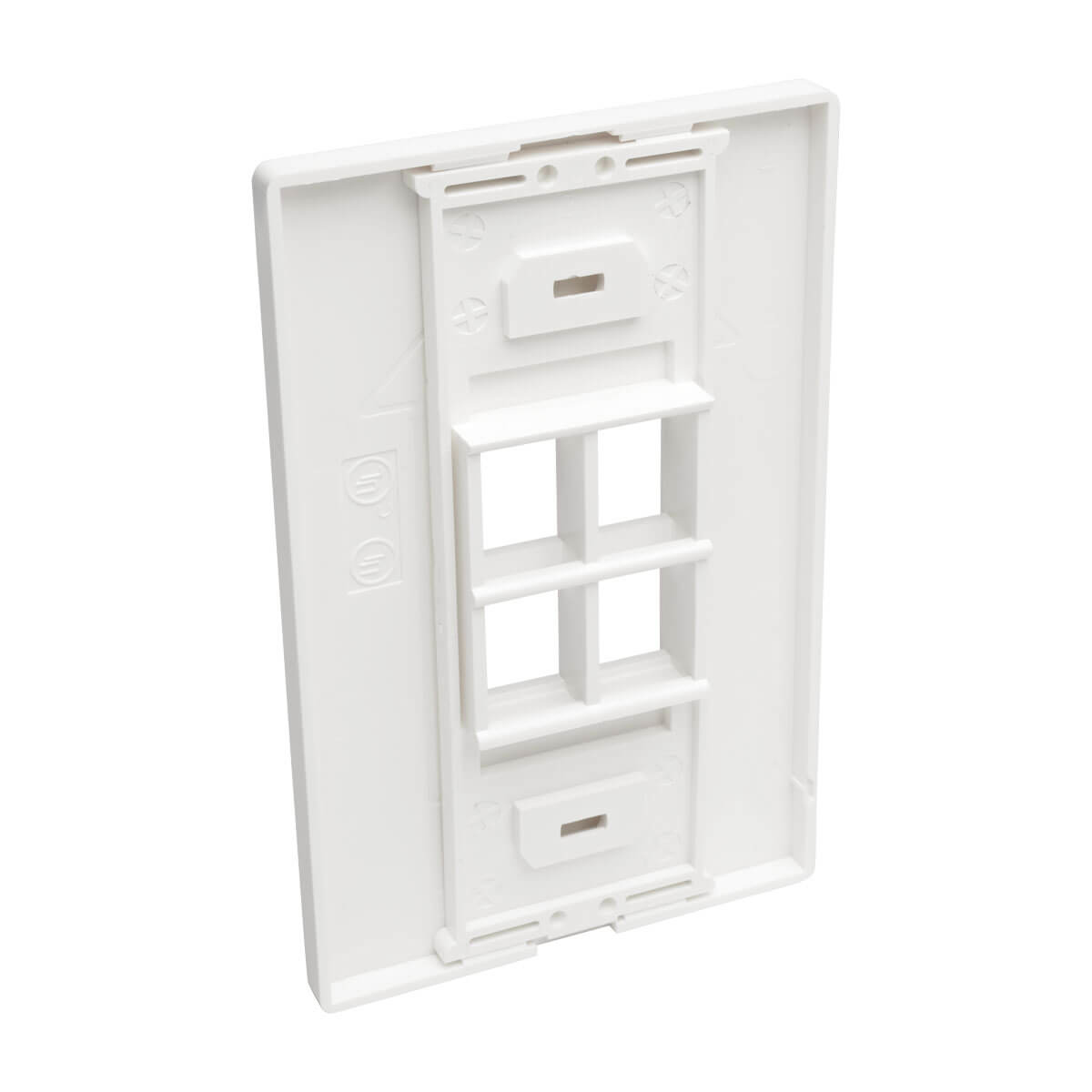 Tripp Lite N080-104. Kleur van het product: Wit, Materiaal: Polycarbonaat, Productontwerp: Conventioneel. Breedte: 81,3 mm, Hoogte: 124,5 mm, Gewicht: 40 g. Aantal per verpakking: 1 stuk(s), Breedte verpakking: 100,1 mm, Diepte verpakking: 12,7 mm. Land van herkomst: Taiwan, (Buitenste) hoofdverpakking breedte: 279,4 mm, (Buitenste) hoofdverpakking lengte: 393,7 mm