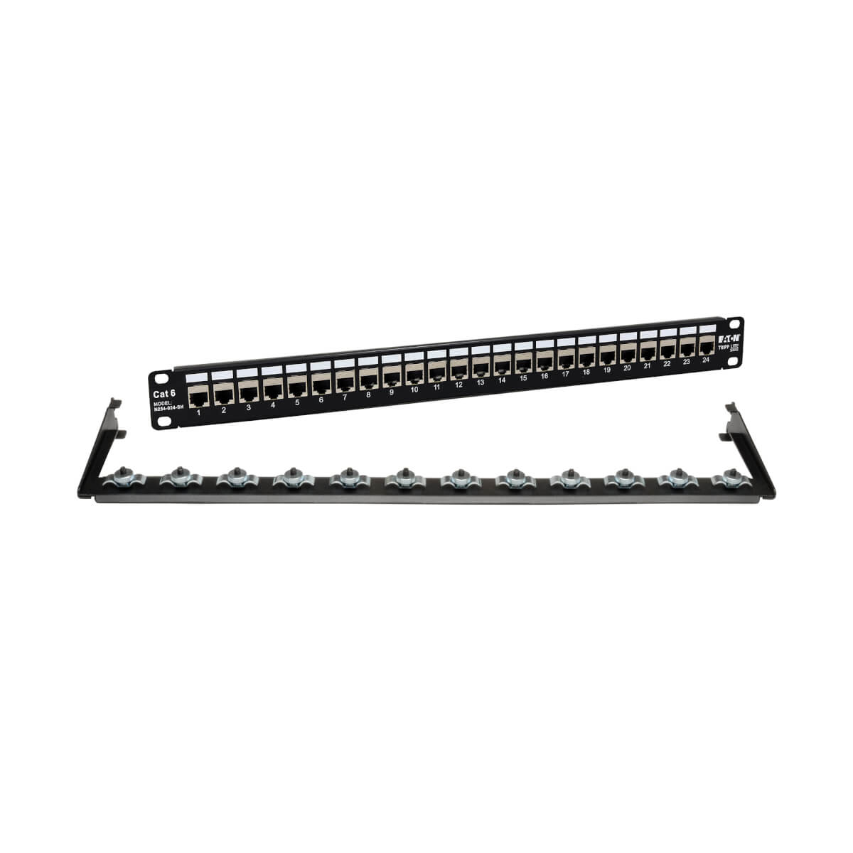 Tripp Lite N254-024-SH. Aansluiting(en): RJ-45, Ondersteundende kabel types: Cat6. Kleur van het product: Zwart, Montage: Rekmontage, Rackcapaciteit: 1U. Certificering: RoHS, TAA. Breedte: 482,6 mm, Hoogte: 43,2 mm, Diepte: 31,8 mm. Breedte verpakking: 500,4 mm, Diepte verpakking: 116,8 mm, Hoogte verpakking: 71,1 mm