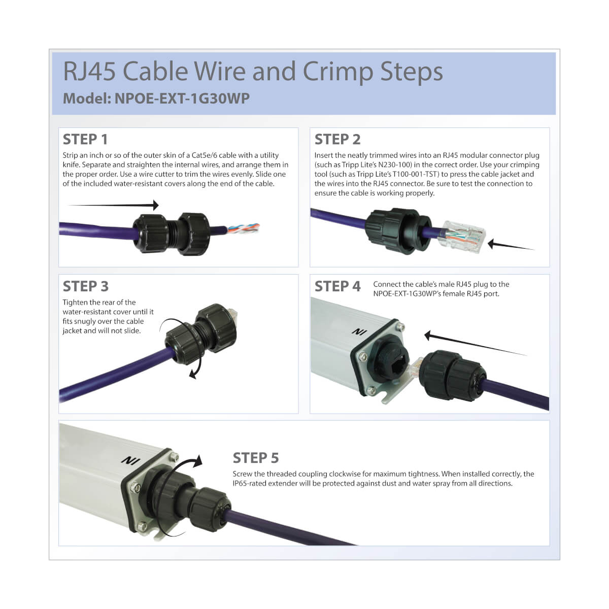 Tripp Lite NPOE-EXT-1G30WP, Fast Ethernet, Gigabit Ethernet, 10,100,1000 Mbit/s, IEEE 802.3, IEEE 802.3ab, IEEE 802.3af, IEEE 802.3at, IEEE 802.3u, IEEE 802.3x, Cat5e, Cat6, Cat6a, Zilver, 30 W