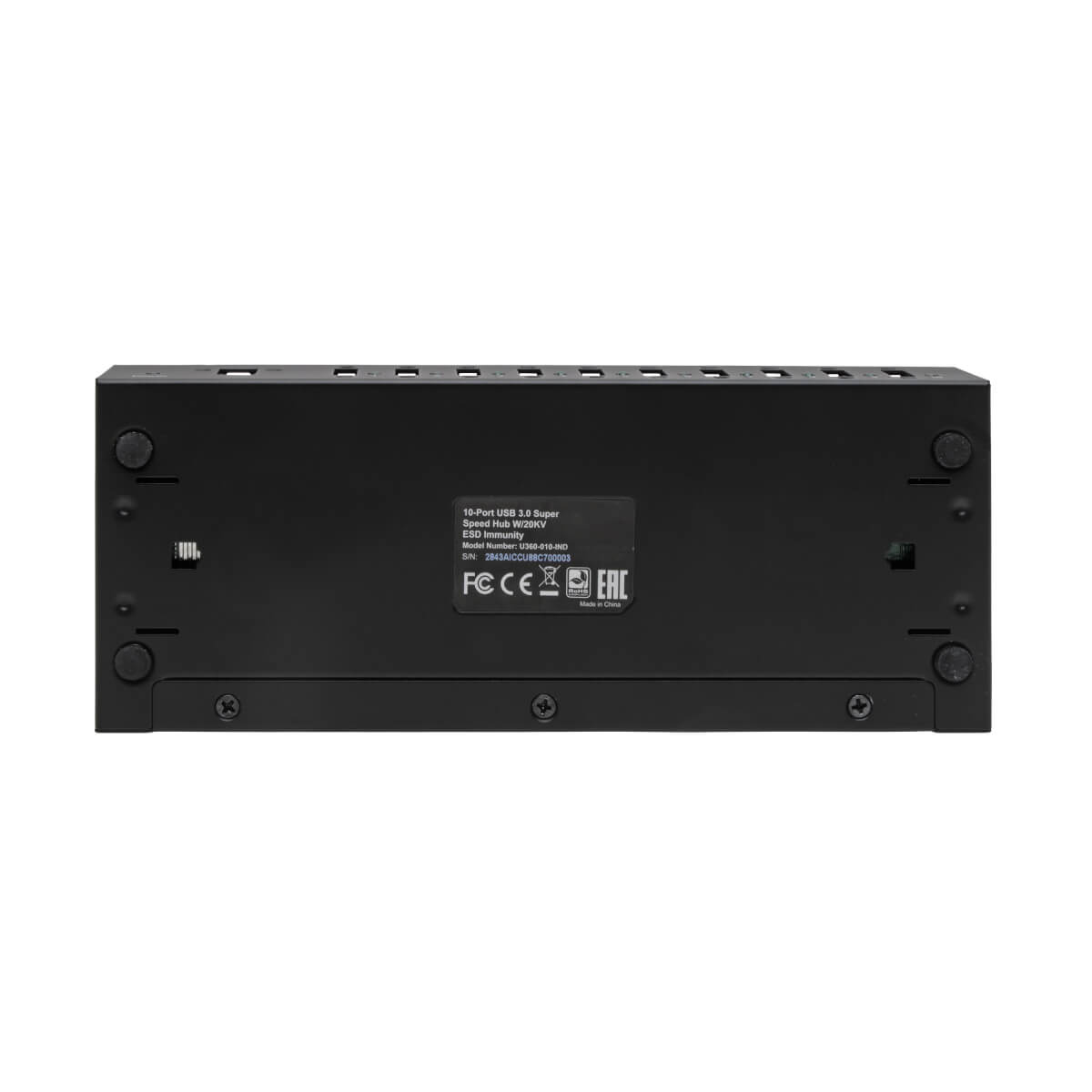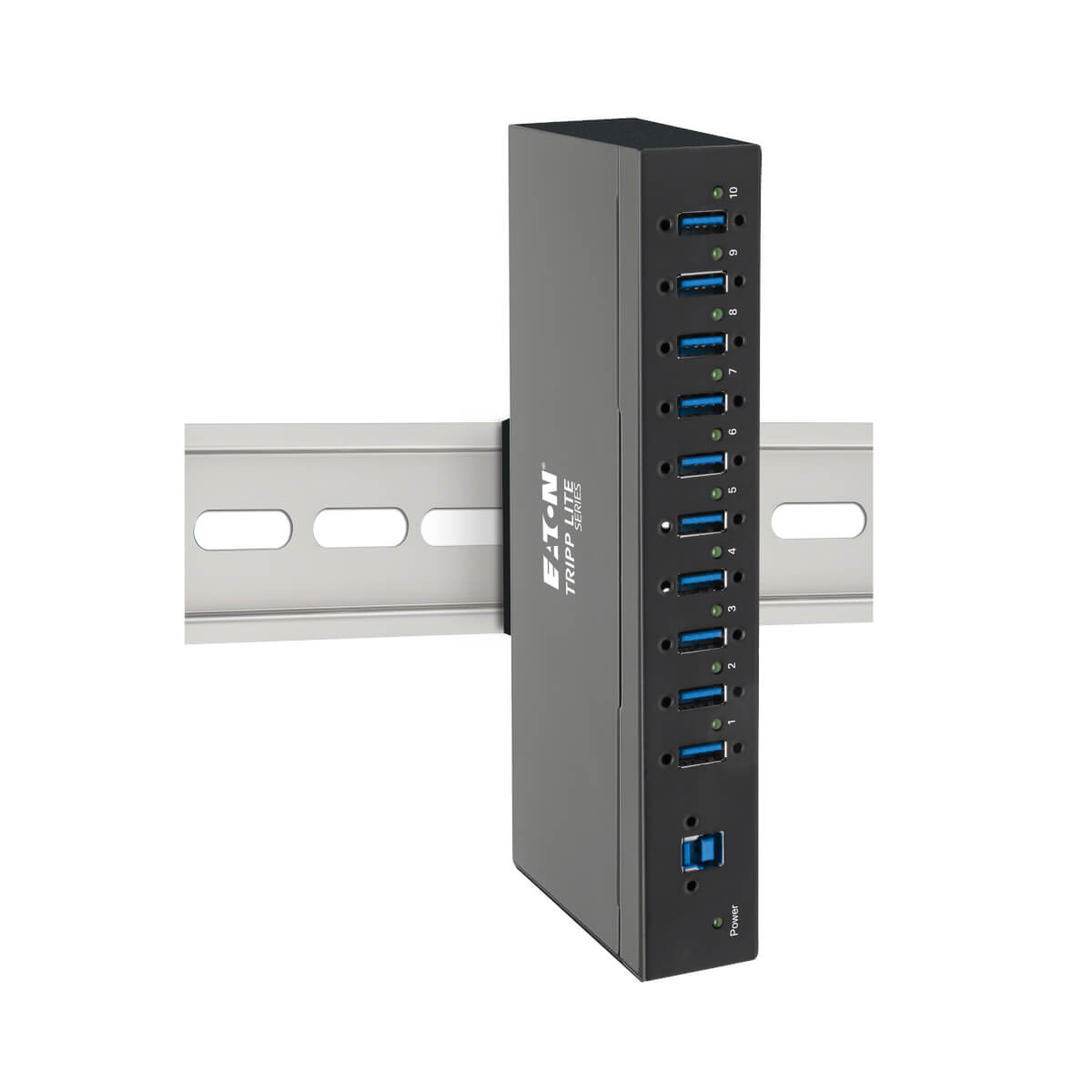 Tripp Lite U360-010-IND. Hostinterface: USB 3.2 Gen 1 (3.1 Gen 1) Type-B, Hub-interfaces: USB 3.2 Gen 1 (3.1 Gen 1) Type-A. Overdrachtssnelheid: 5000 Mbit/s, Kleur van het product: Zwart, Materiaal behuizing: SGCC. Vermogensverbruik (max): 51,3 W, Ingangsspanning: 100 - 240 V, Stroom: 0.6 A. Breedte: 201 mm, Diepte: 81 mm, Hoogte: 33 mm. Breedte verpakking: 114,3 mm, Diepte verpakking: 228,6 mm, Hoogte verpakking: 66 mm