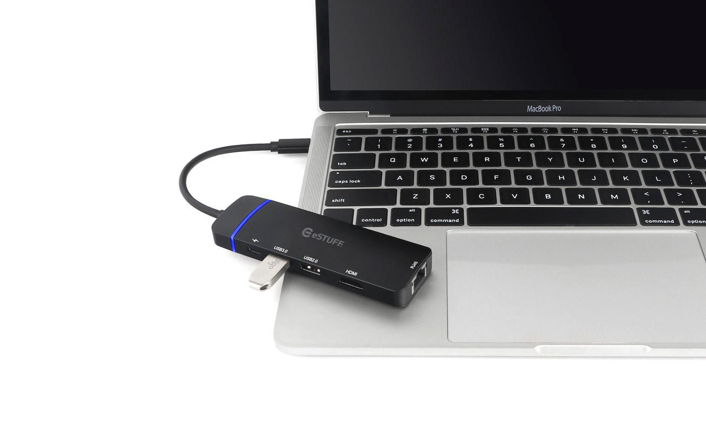 eSTUFF GLB235420, USB 3.2 Gen 1 (3.1 Gen 1) Type-C, 100 W, 100 Mbit/s, Zwart, HDMI, Stroom
